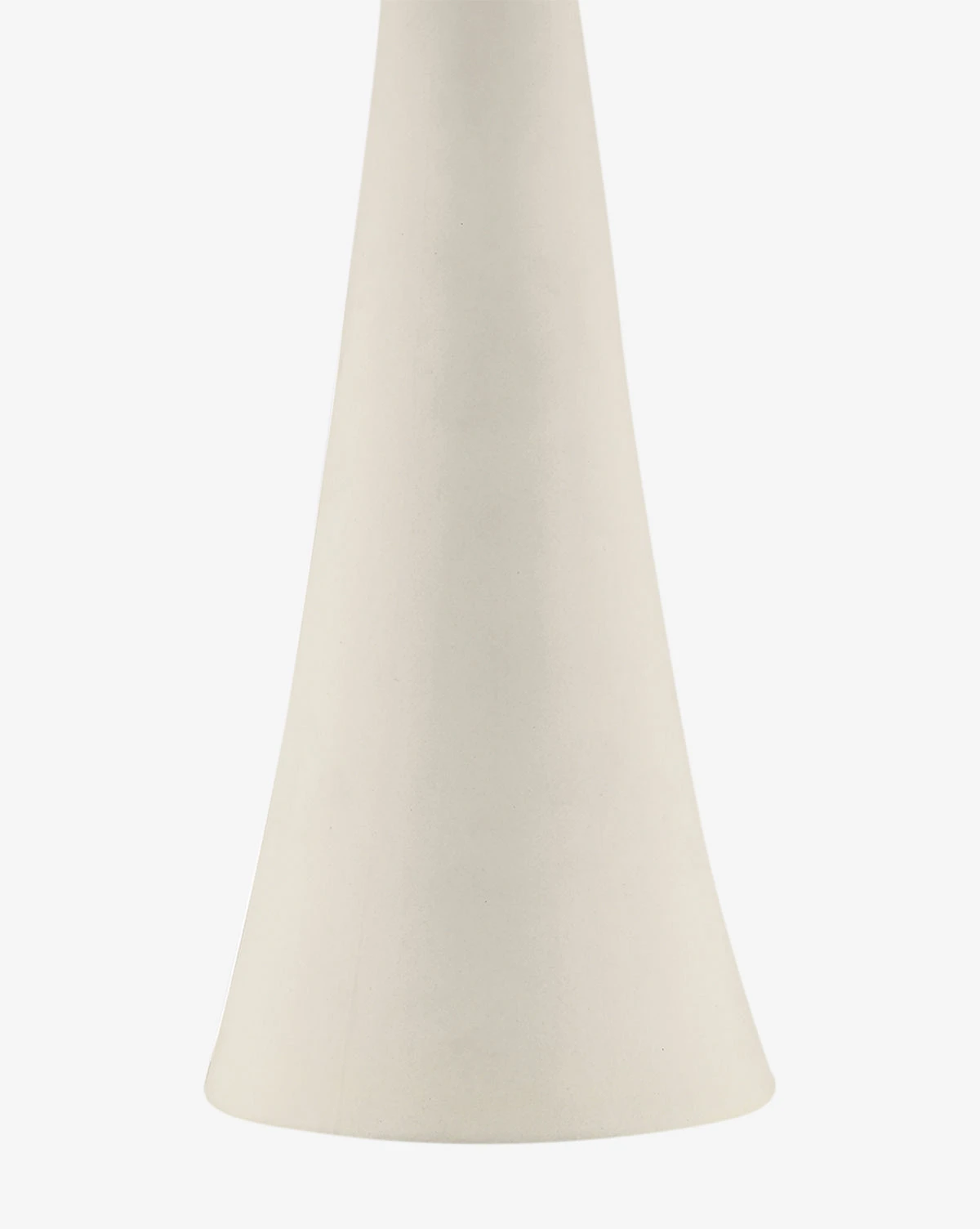 In a sculptural tapered form, the Alana Table Lamp is crafted from ceramic and finished in ivory. Antique brass details accentuate the simple modern form of the table lamp, with pull chains on each side of the lamp and a bold round finial.