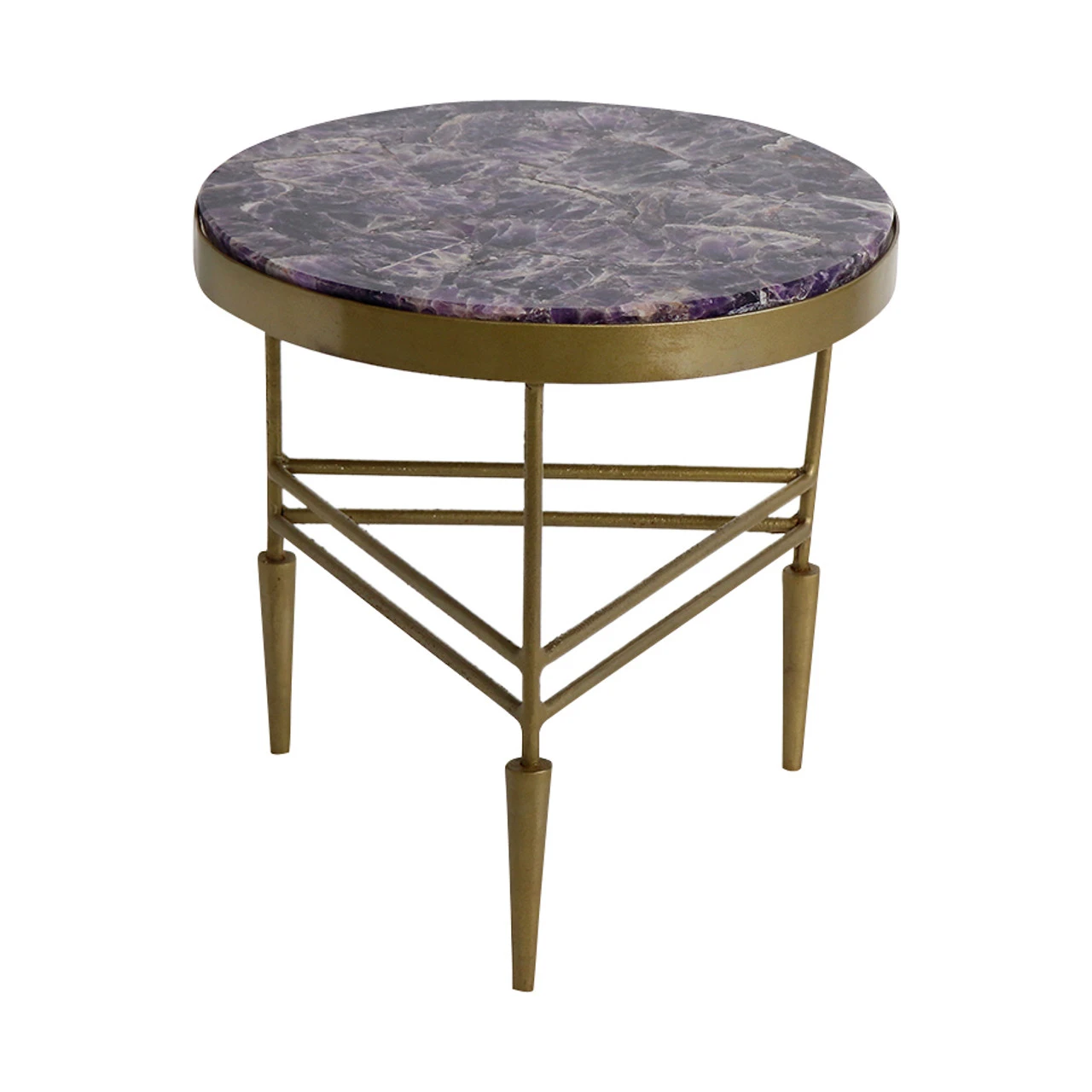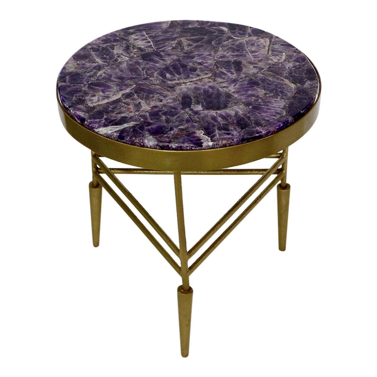 Sheherazade’s Rachid Ouassil brought his contemporary vision to life with this beautiful table. Featuring a natural amethyst top, it’s perfect as a side table, coffee table , nightstand or just an accent table.