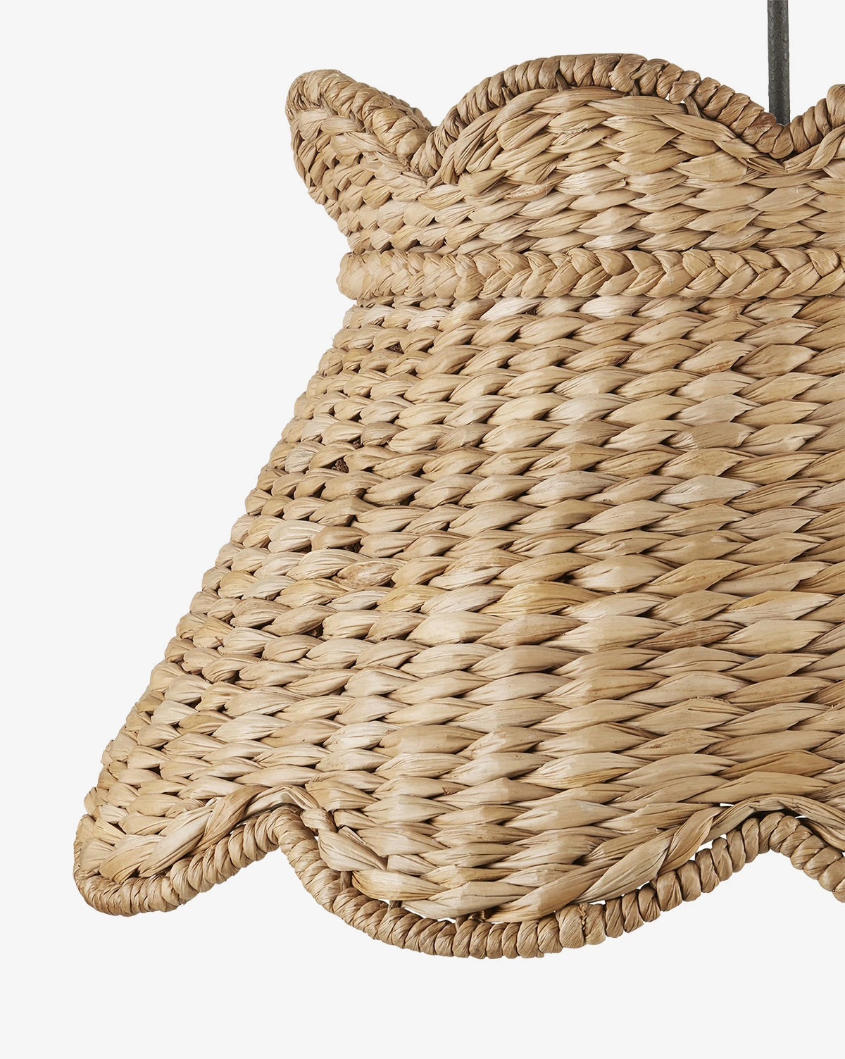 In a classic and organic design, the Annabelle Pendant features a tapered shade made from handwoven water hyacinth. With a wrought iron chain, the pendant makes a statement with its artisan feel and mixed materials.
