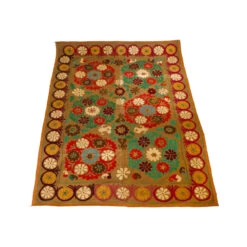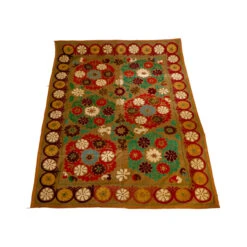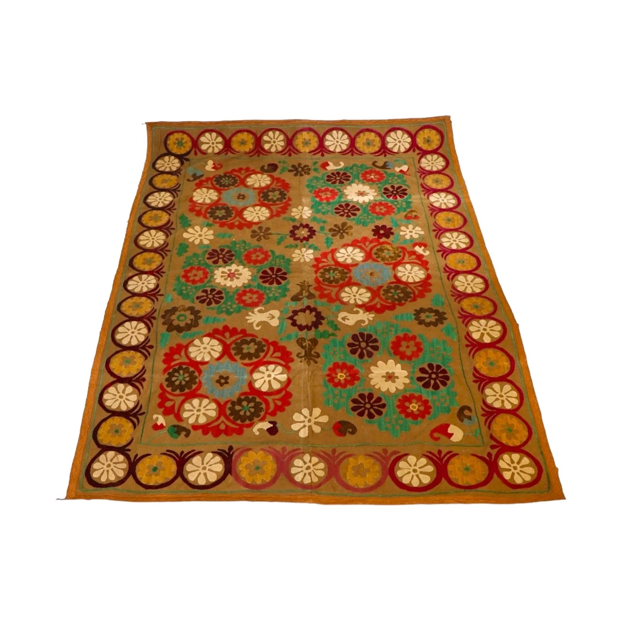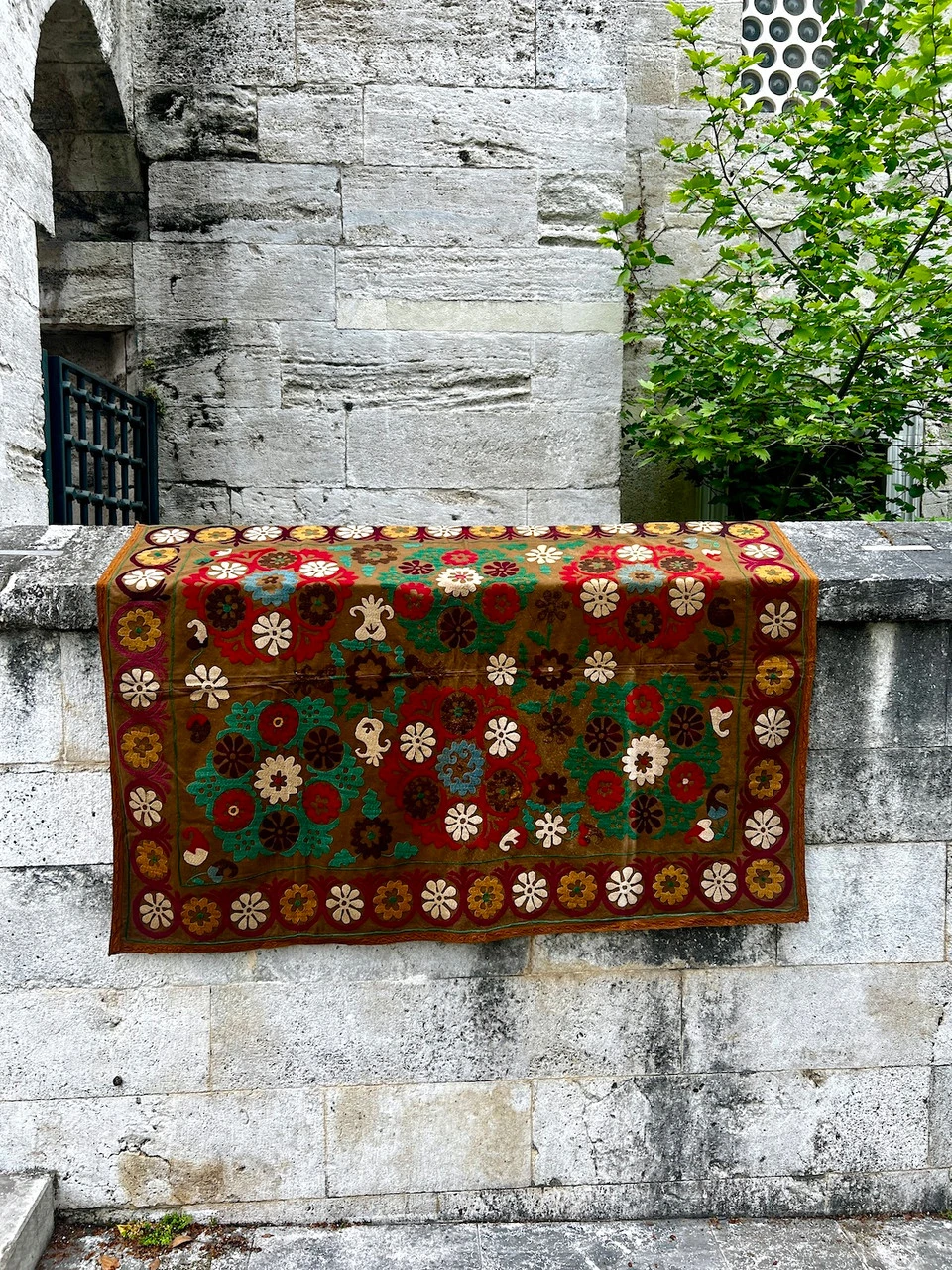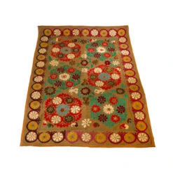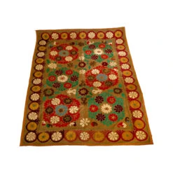 Step into the vibrant world of Uzbekistan with our Suzani Textile collection. Originating from nomadic tribes, these textiles boast intricate embroidery, vibrant colors, and elaborate motifs. Crafted with silk embroidery on cotton-backed linen, each piece, possibly from the late 19th or early 20th century, offers both durability and beauty. In excellent antique condition, our Suzani textiles serve as stunning table or bed coverings or as captivating wall décor. Immerse yourself in the artistry and history of Uzbekistan with our curated collection, bringing a piece of Central Asian heritage into your home.