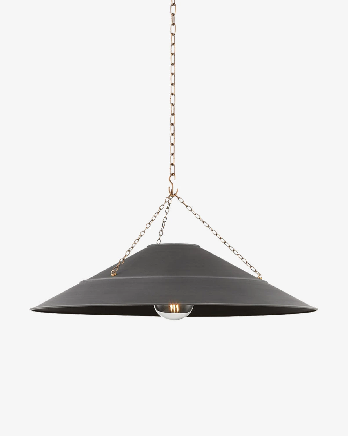 The Arcane Pendant strikes a balance between its simple structure and its stunning tapered shade. In an aged brass finish, the pendant makes a unique statement in lighting designs from the kitchen to the living room.