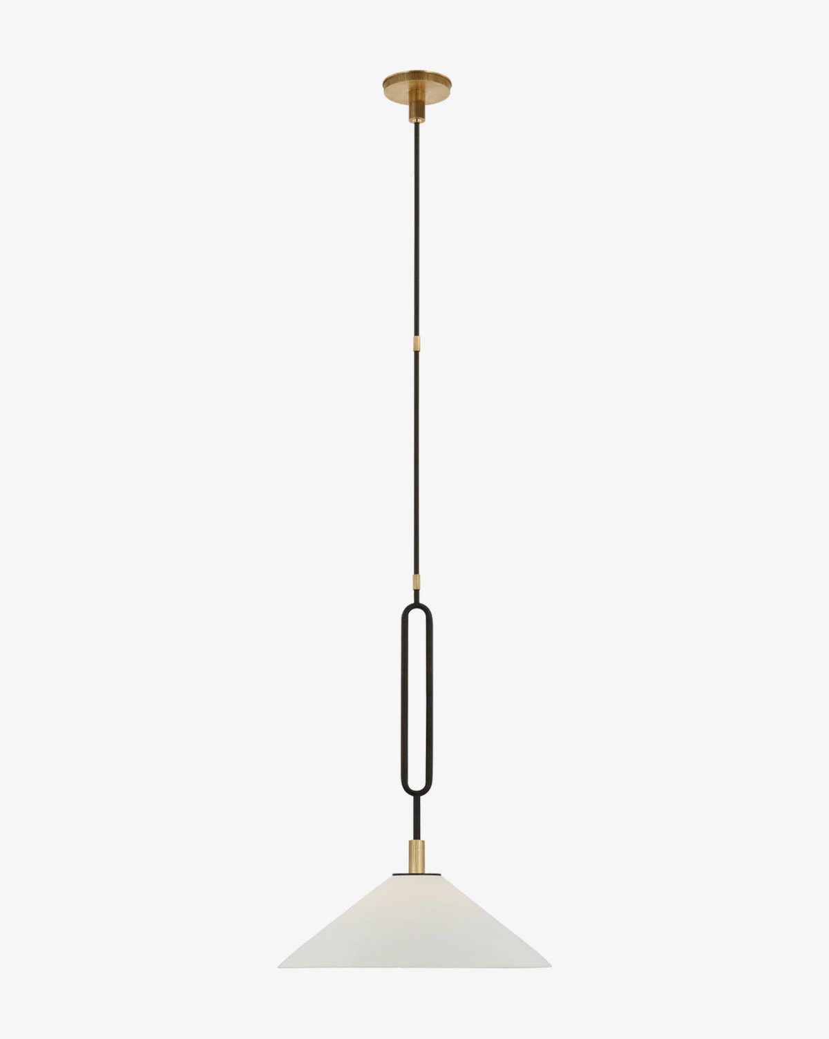 The Argo Pendant strikes a balance between its sleek structure and its stunning tapered shade. The matte porcelain shade brings contrast to the dark metal shapely rod, making a unique statement in lighting designs from the kitchen to the living room.