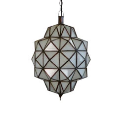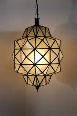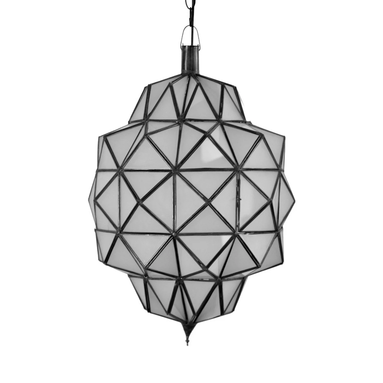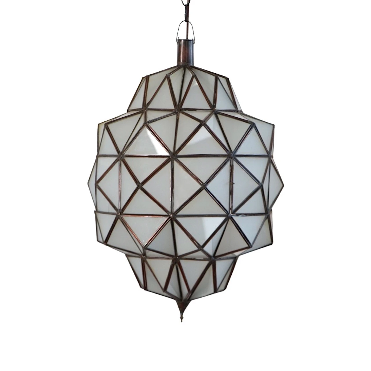 The delicate frosted glass will instantly transform the event space into something dreamy and ethereal. The details on its individual panes made of metal are incredibly remarkable in this beautiful Moroccan furniture. Newly wired for use that is also housing a candelabra light, this piece is sure to elevate your homes with extra sophistication.