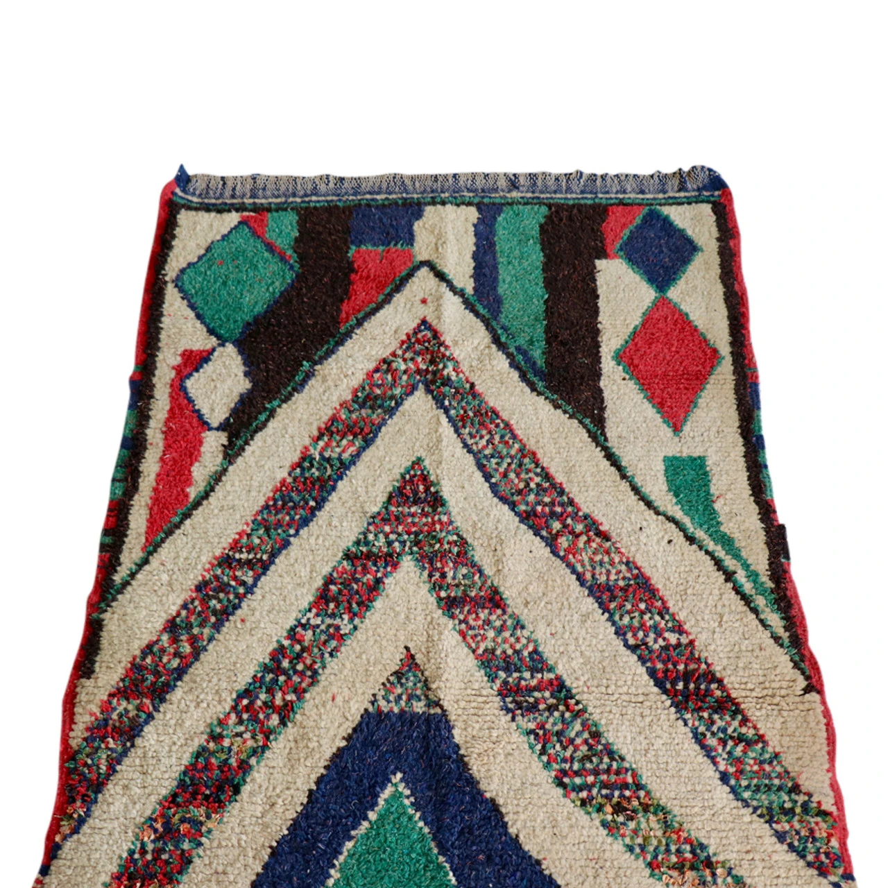 This is a one of a kind, Azilal, handwoven rug in beautiful vintage shape. Perfect for apartments and small spaces, this vintage Berber rug comes from Azilal tribe in the Atlas Mountains of Morocco and works well next to the bed or in an entryway.Â