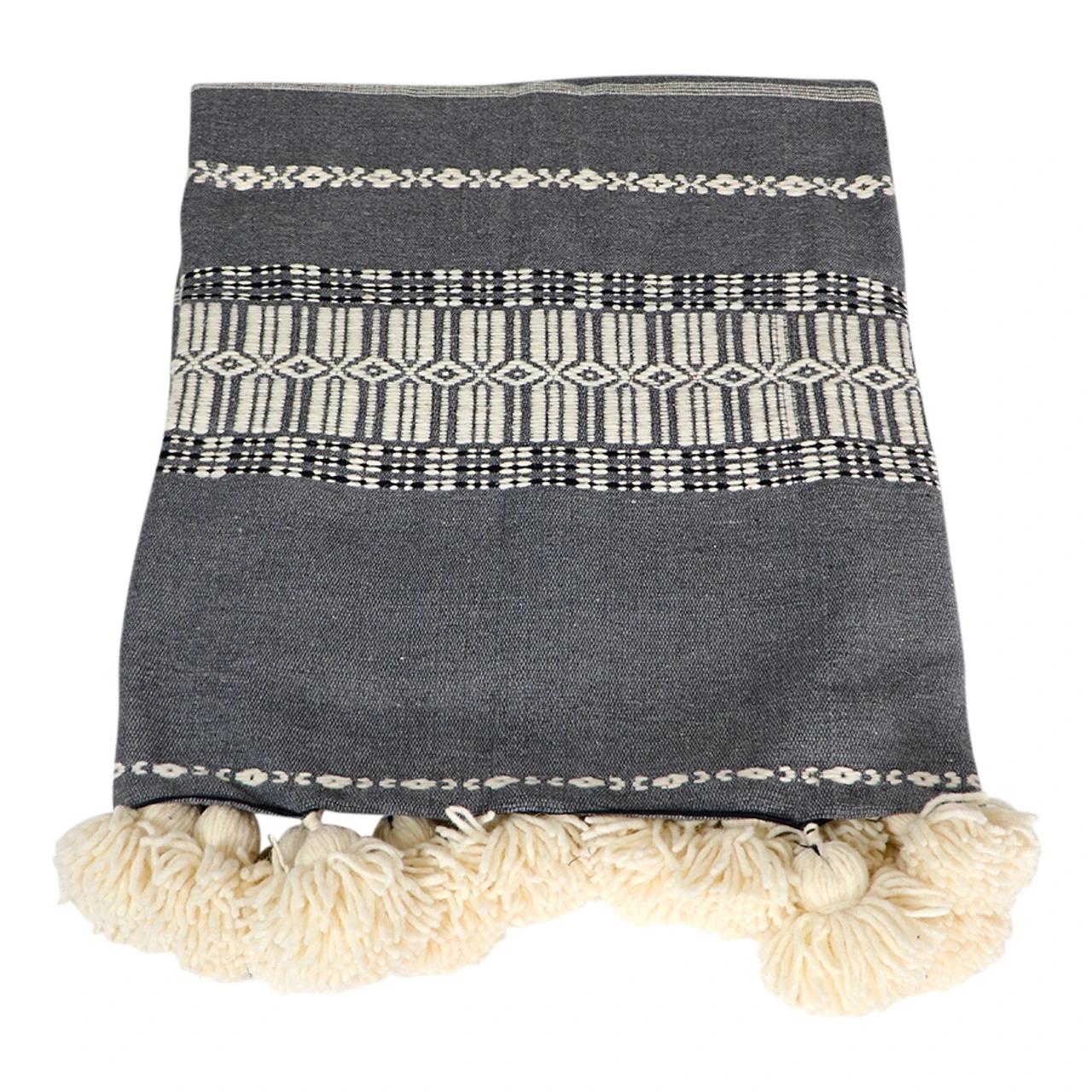 - Tags: super soft, moroccan pom pom, 100 hand spun, hand woven, extra layer, oversized pom poms, atlas mountains, pom pom throw blanket, free shipping, black stripes, hand spun wool, pom pom blanket, throw blanket.