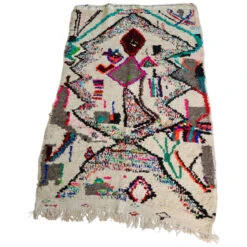 The Beni Ourain tribe is made up of 17 different Berber tribes that live in the Atlas Mountains. Some have come to the lowlands to farm, but many still raise sheep at the higher up elevations. The sheep produce excellent high grade wool which goes into the great rugs woven by the women of Beni Ourain tribes.