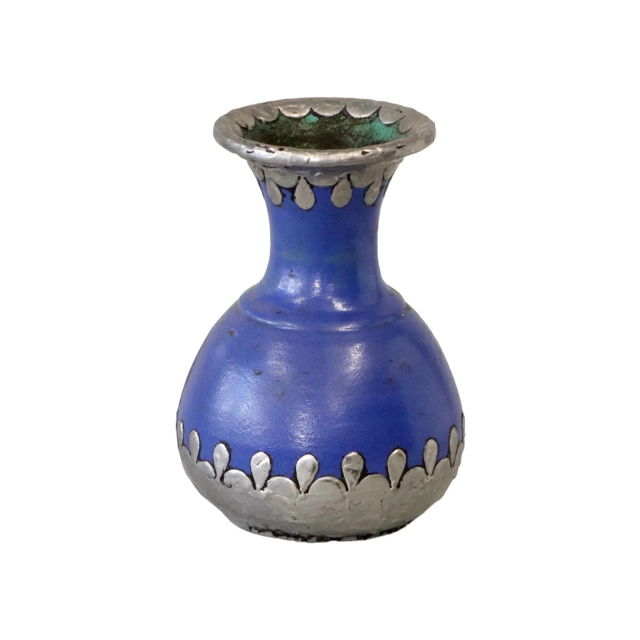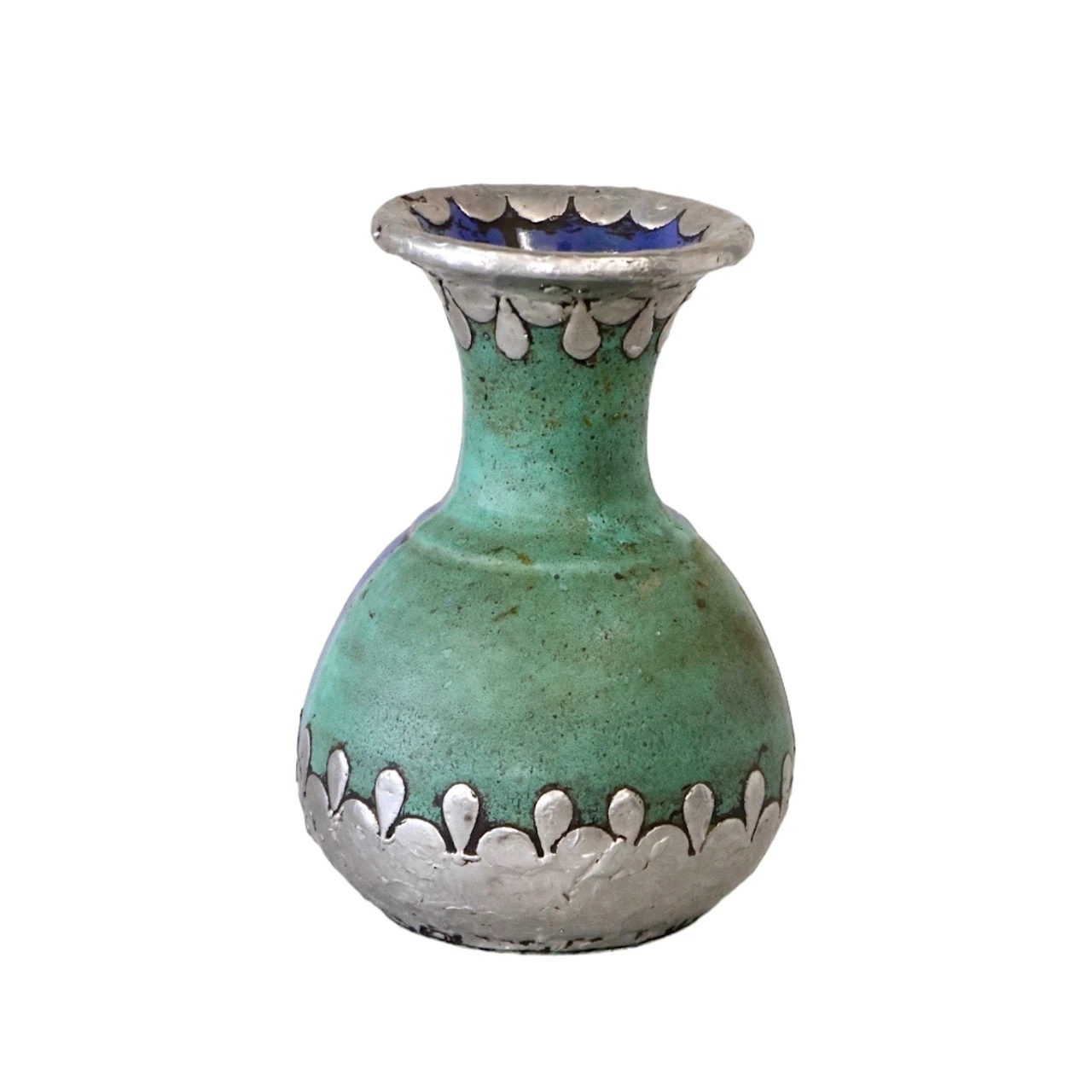 A marriage of Moroccan artistry, this vintage vase hails from the imperial city of Fez and features metal accents around the neck and base added by an artist in Marrakech.