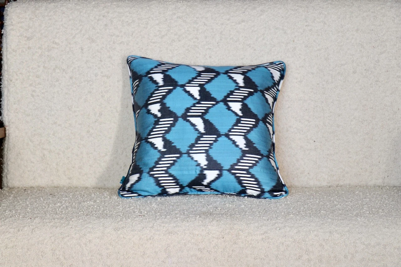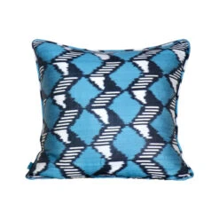 Elevate your home decor with our stunning Blue & Black Ikat Pillows, expertly made to add a touch of artisanal beauty to any space. Each pillow features intricate patterns inspired by traditional Ikat weaving techniques, creating a unique and timeless aesthetic. Made from high-quality silk fabric, these pillows are not only stylish but also durable and comfortable. Whether you’re looking to add a pop of color to your living room or a cozy accent to your bedroom, our Ikat Pillow is the perfect choice. Experience the elegance and craftsmanship of these exquisite pillows and transform your home into a haven of style and sophistication.