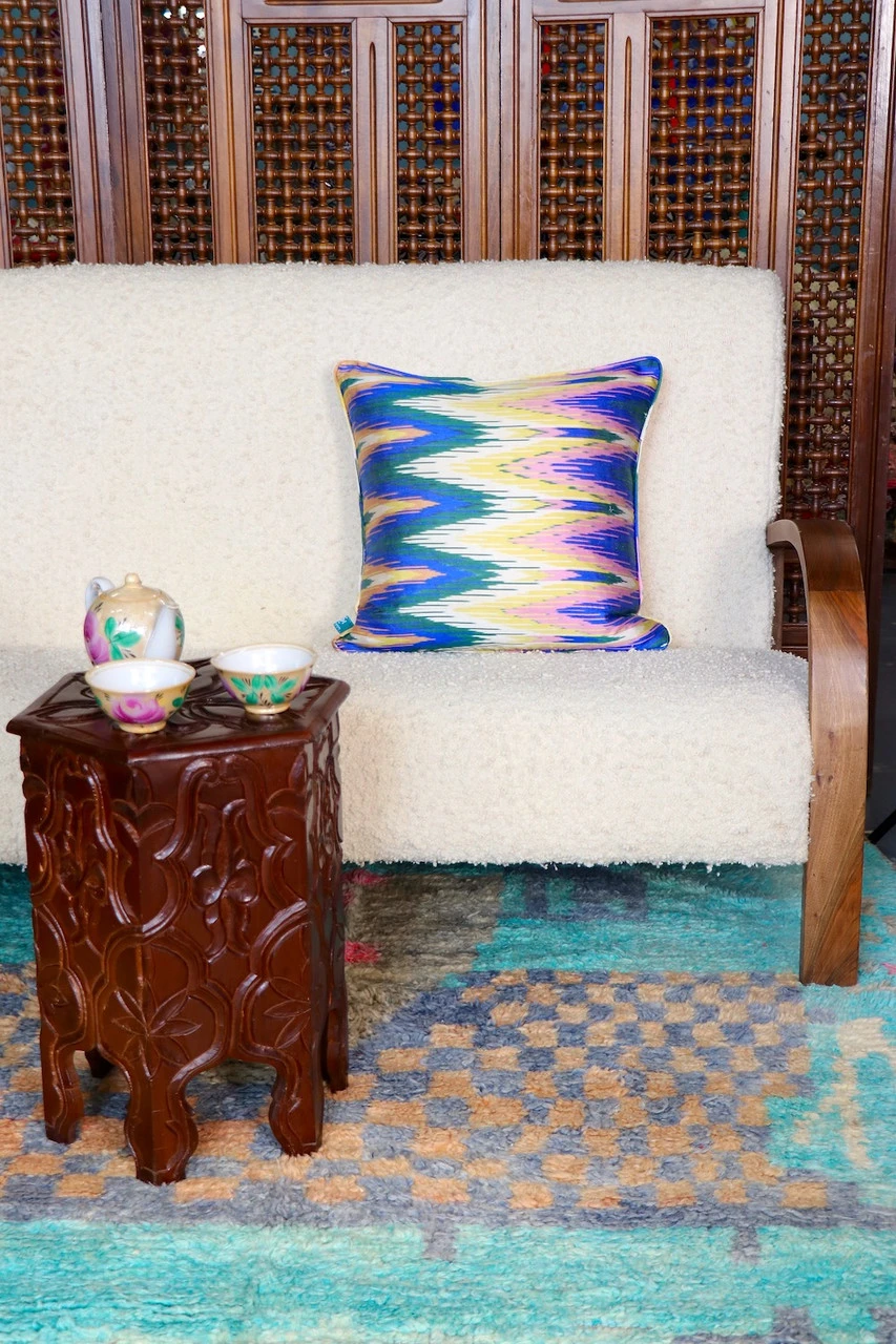 Elevate your home decor with our stunning Blue Majorelle Ikat Pillows, expertly made to add a touch of artisanal beauty to any space. Each pillow features intricate patterns inspired by traditional Ikat weaving techniques, creating a unique and timeless aesthetic. Made from high-quality silk fabric, these pillows are not only stylish but also durable and comfortable. Whether you’re looking to add a pop of color to your living room or a cozy accent to your bedroom, our Ikat Pillow is the perfect choice. Experience the elegance and craftsmanship of these exquisite pillows and transform your home into a haven of style and sophistication.