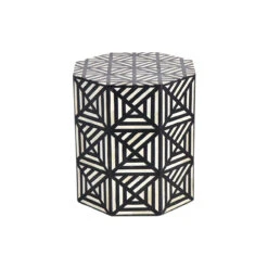 Bone Inlay Drum Side Table: