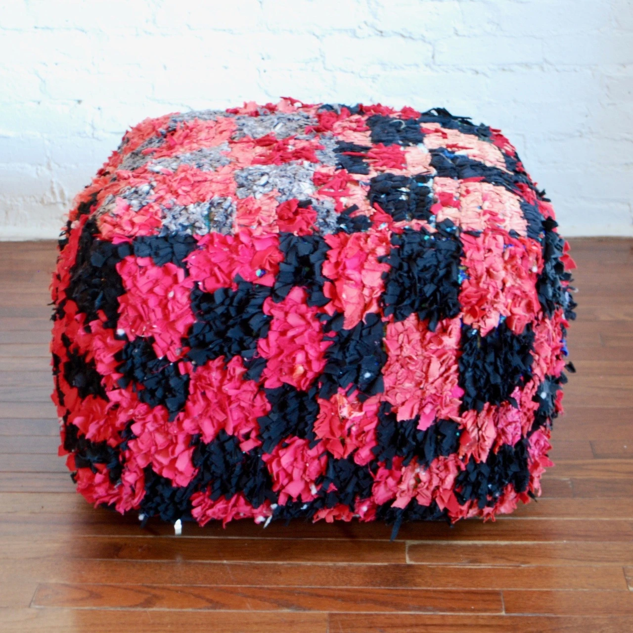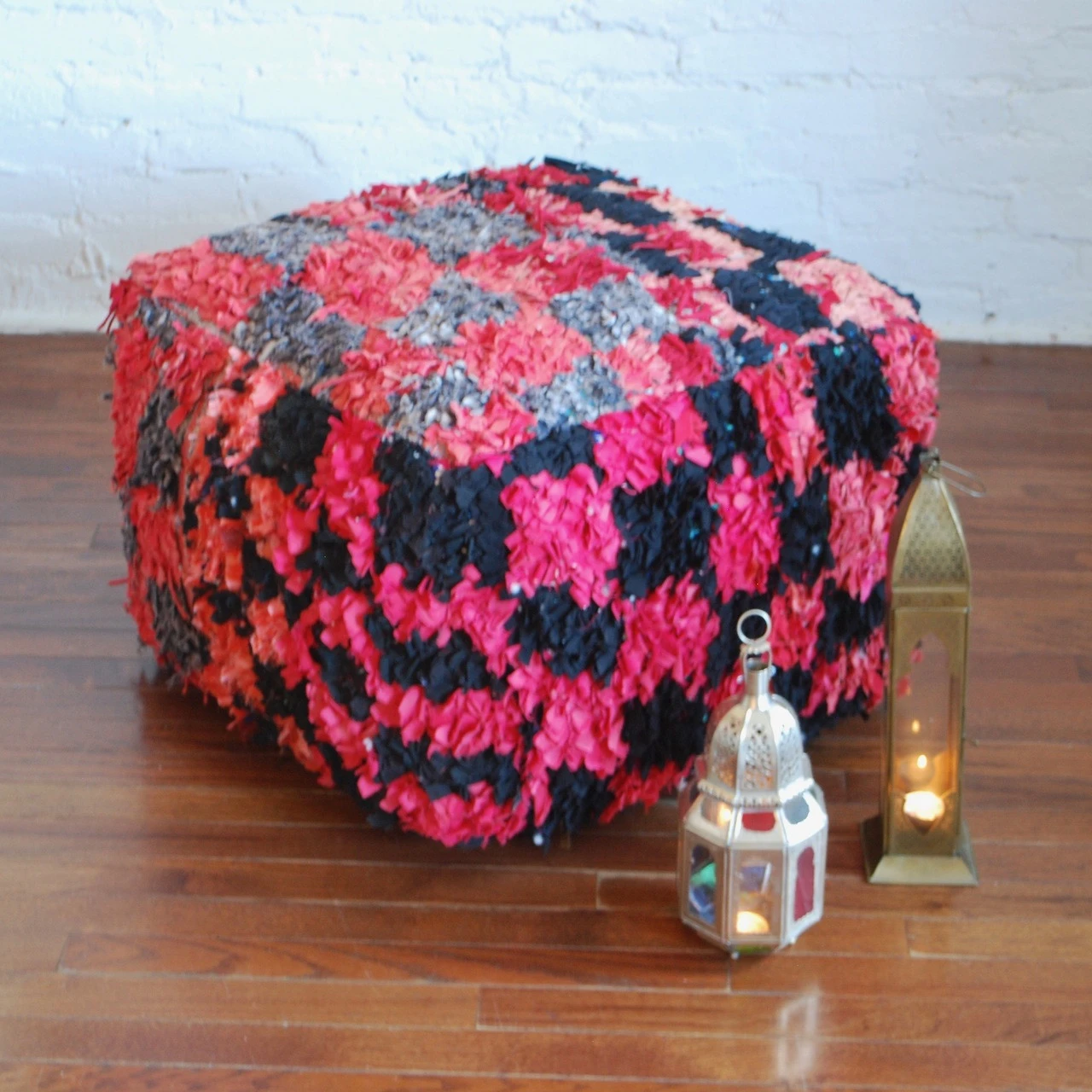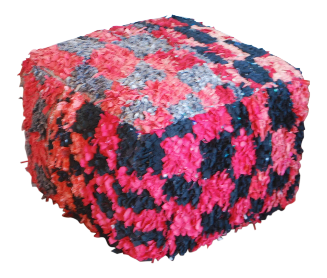 Made from boucherouite rugs, these one-of- a-kind poofs add a playful touch to a kid’s room and can also be used as seating or a table in a living room or bedroom.