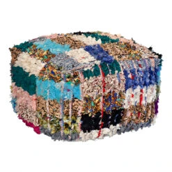 Made from boucherouite rugs, these one-of- a-kind ottoman add a playful touch to a kid’s room and can also be used as seating or a table in a living room or bedroom.