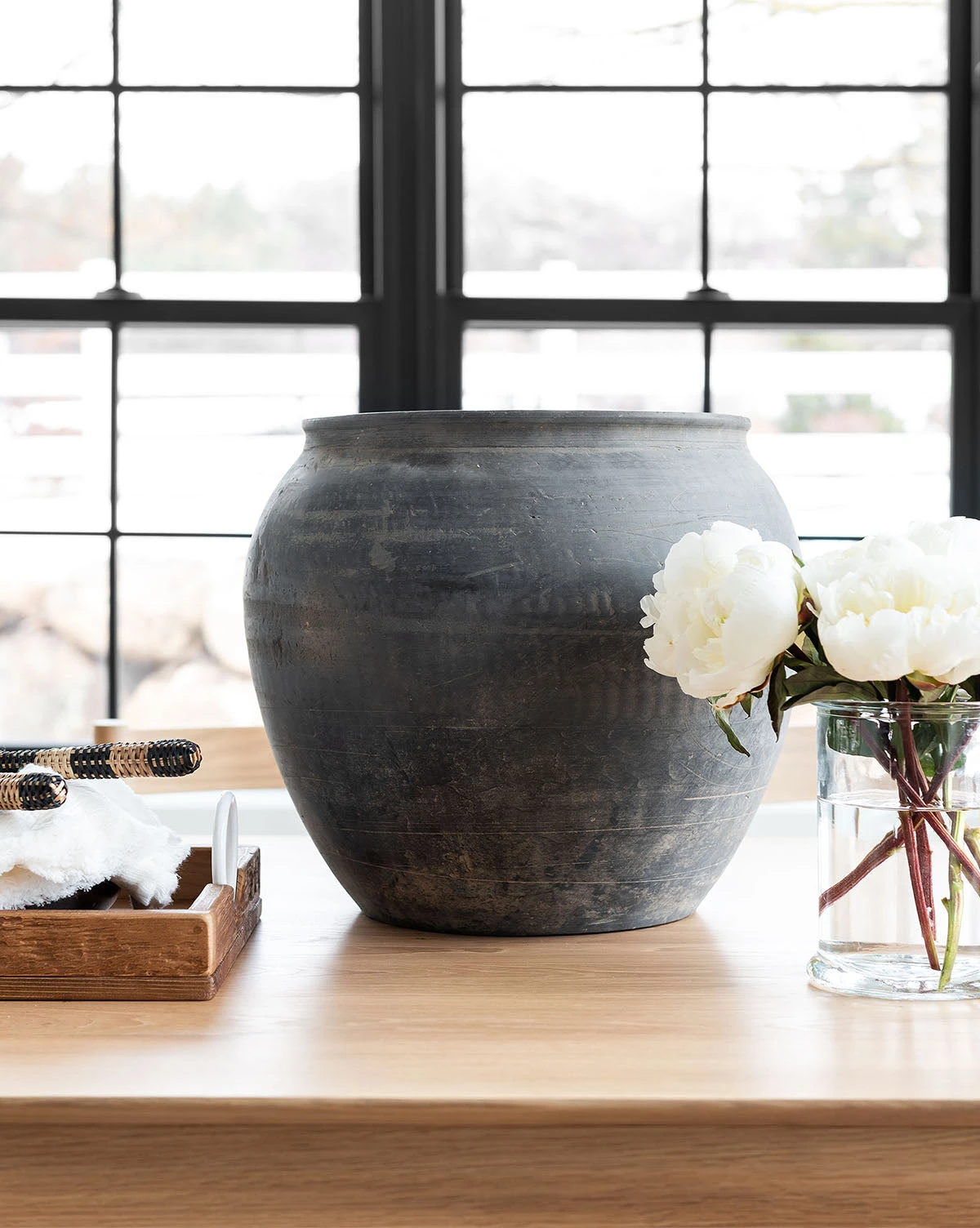 Our hand-crafted Brushed Charcoal Vase draws your eye with its deep coloring and natural texture. Placed in your built-ins to add dimension or simply styled on a side table or pedestal, use its authentic character to liven up your living space. Each beautiful vase is over 100 years old, it’s no wonder they offer such an antique, found look!