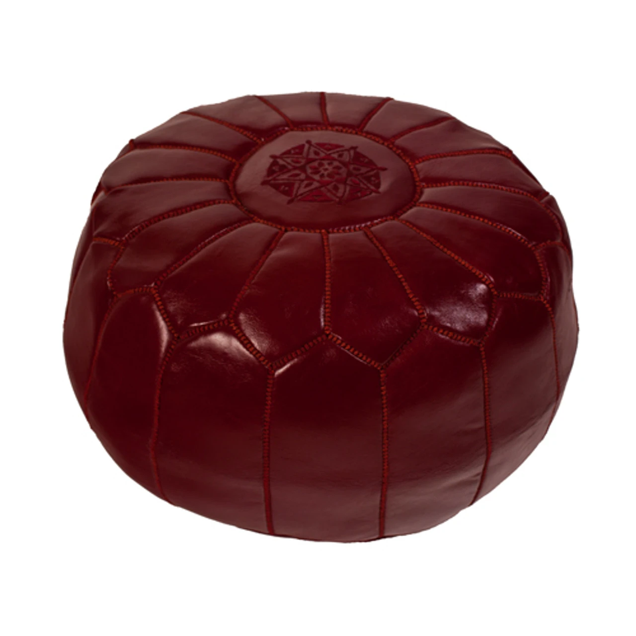 Welcome this Burgundy Moroccan Leather Pouf into your home. Place your order online now.