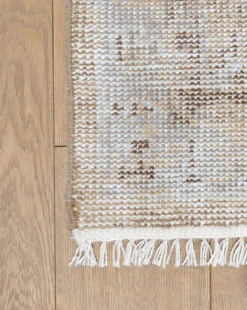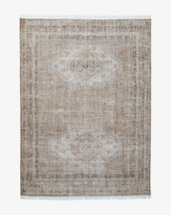 In a traditional style, the Charlot Hand-Knotted Rug has a muted intricate pattern that gives it a vintage feel. The rug is designed to last, made from hand-knotted polyester by skilled artisans. With its short white fringe, the rug is subtly textural and will seamlessly suit your decor wherever it is placed. Â