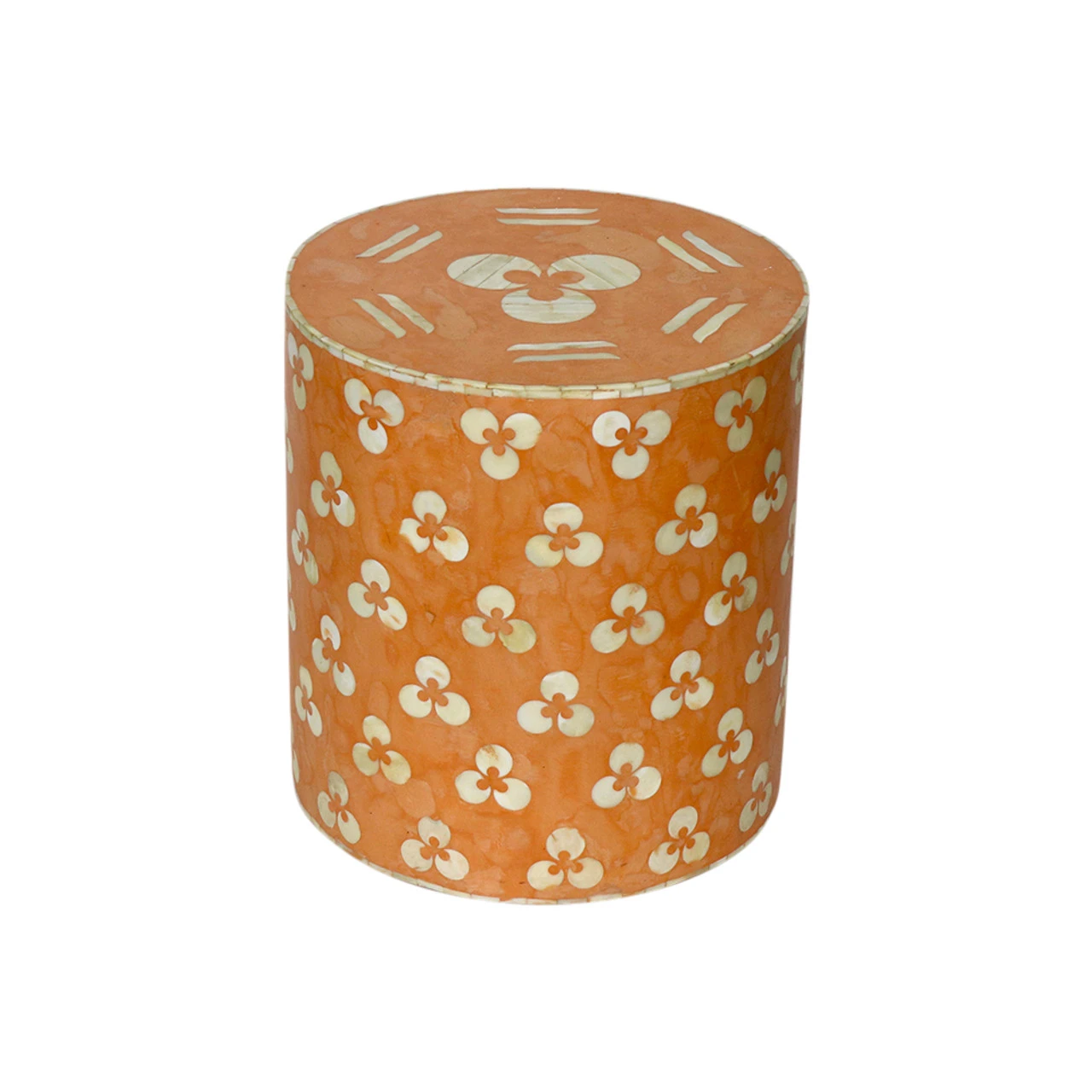 Contemporary and functional, this Chintamani drum table features a bone-inlaid, floral pattern on medium-density fiberboard. Ideal for a side table, nightstand, stool or decorative piece.