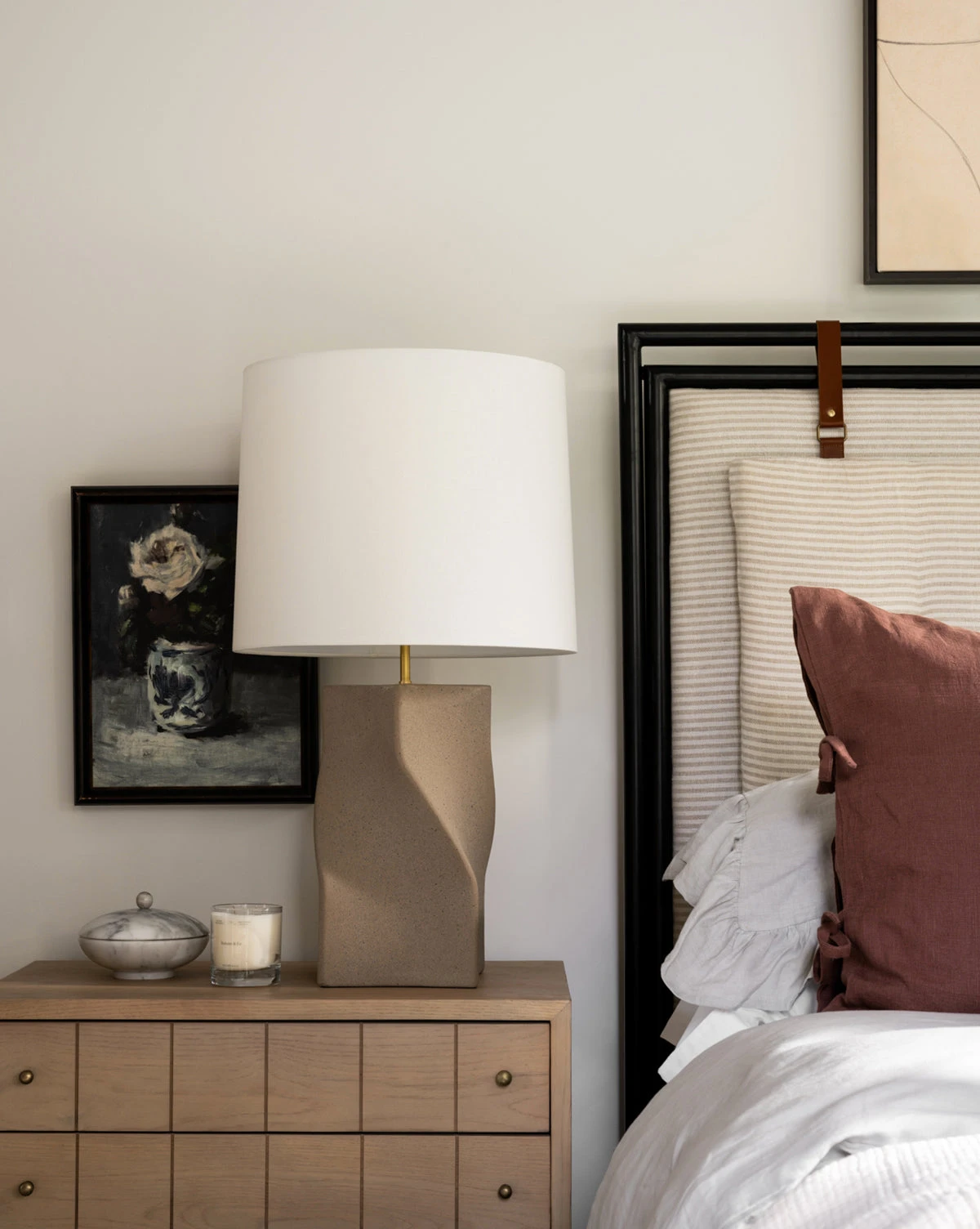 Art and lighting combine in the shapely ceramic form of our Claribel Table Lamp. With a smooth gray, or warm brown hue, this fixture is fitted with a linen shade, instantly elevating your bedside design.