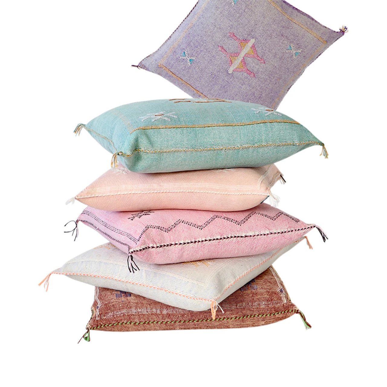 Featuring Moroccan Berber-inspired motifs, these silk sabra pillows come in five different colors and can be used on the floor or on a bed or sofa.