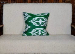 Elevate your home decor with our stunning Emerald Ikat Pillows, expertly made to add a touch of artisanal beauty to any space. Each pillow features intricate patterns inspired by traditional Ikat weaving techniques, creating a unique and timeless aesthetic. Made from high-quality silk fabric, these pillows are not only stylish but also durable and comfortable. Whether you’re looking to add a pop of color to your living room or a cozy accent to your bedroom, our Ikat Pillow is the perfect choice. Experience the elegance and craftsmanship of these exquisite pillows and transform your home into a haven of style and sophistication.