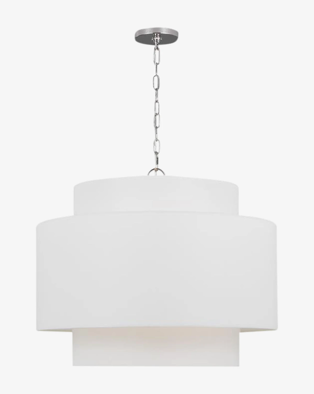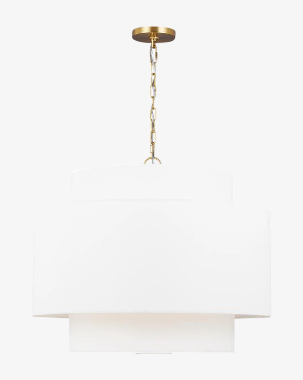 Bringing layers to lighting design, the Glennon Pendant has a refined, layered shade that gives dimension to ceilings. Hanging from a delicate chain available in two different finishes, this pendant adds an element of elegance to your lighting.