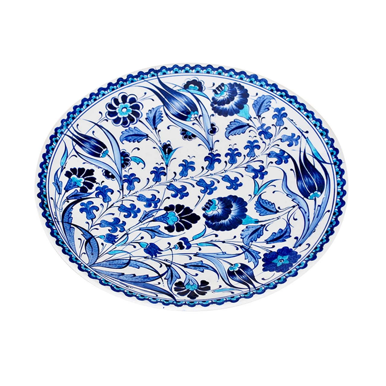 Beautiful ceramic platter handmade in Iznik, Turkey following the local pottery tradition. Featuring lovely tulip, lily of the valley and carnation motifs. Perfect as serving dish or can be hung on the wall as decoration.