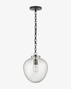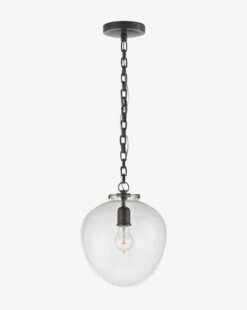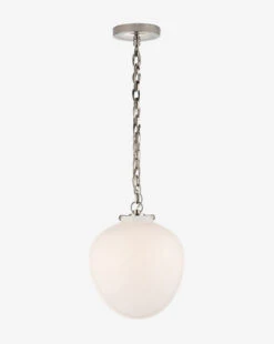 With a tapered and shapely shade, the Katie Acorn Pendant lends a contemporary feel with its design and choice of three striking finishes. The white glass shade brings warm light to your space, while the sleek chain and hardware provide a sense of sophistication and refinement wherever it is styled.