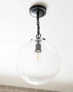 This traditional round glass globe pendant will illuminate your space with its stunning glow. We love that the chain link gives just enough edge to the shine of the glass.
