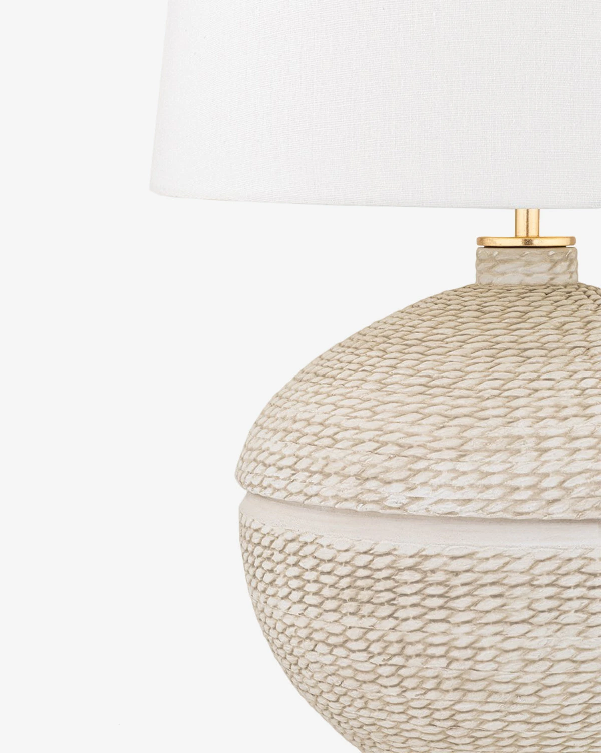 Stained and textured in a hand-woven style, the Katonah Table Lamp is endearingly approachable. Its beige and cream palette is airy and light, complemented by gold leaf accents on the base, collar, and finial of the lamp. Complete with a Belgian linen shade, the Katonah Table Lamp is both earthy and elegant with a touch of organic texture.