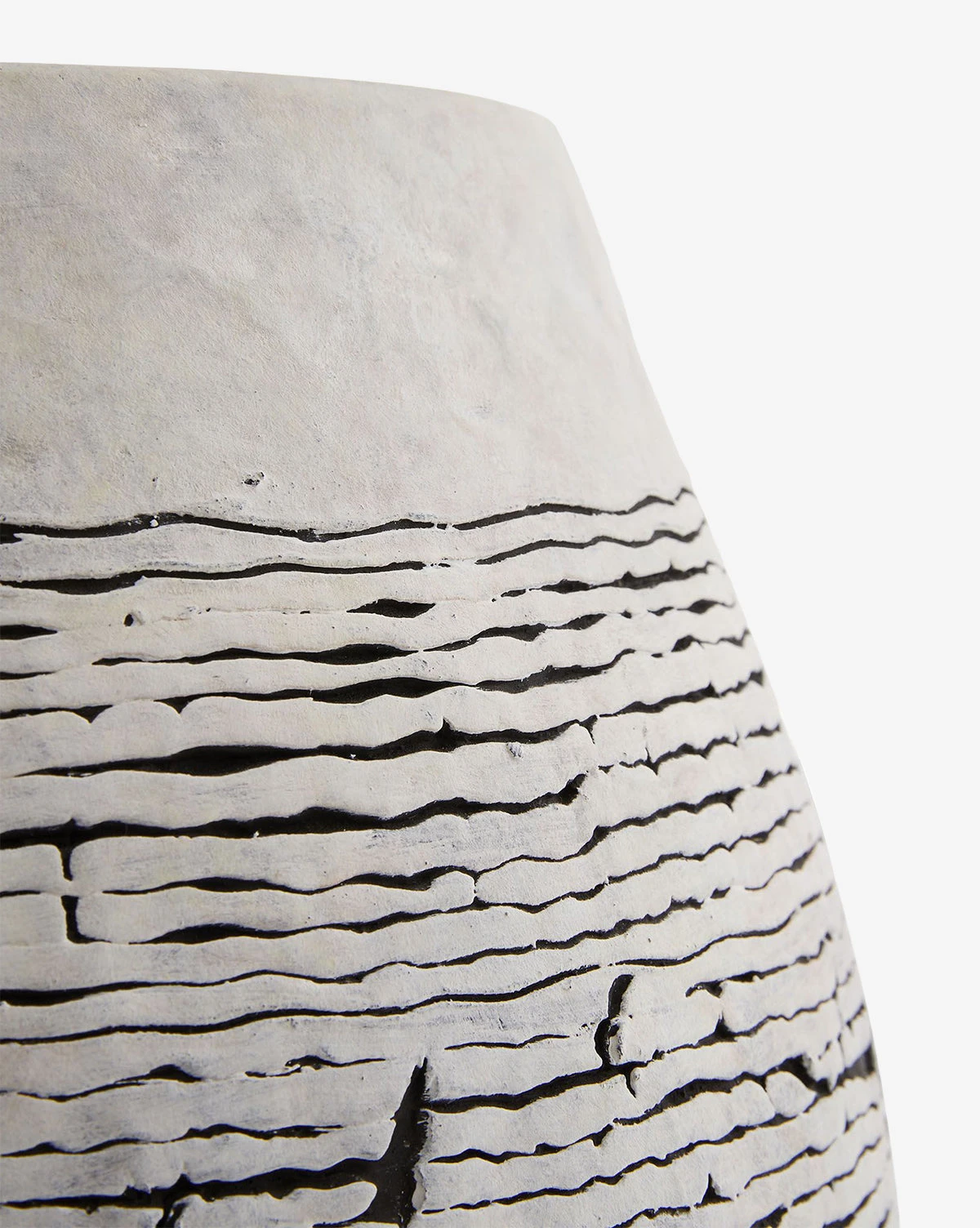 A bold yet understated presence, the Kita Table Lamp brings a stunningly detailed feel to lighting design. With a robust terracotta finish etched by hand, the Kita Table Lamp has a crackled texture that presents like stone. Finished with an off-white linen shade and matching terracotta finial, this table lamp is uniquely suited to bring texture to the room. Because of its hand-etched nature, the terracotta finish will vary from piece to piece.