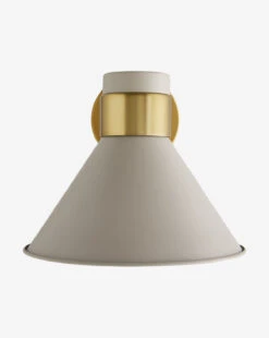 A classic schoolhouse-inspired shade, the Lane Sconce makes retro design modern. An antique brass steel frame upholds the shade, available in a taupe finish, and pivots to allow adjustable light. Expressive yet timeless, the Lane Sconce brings eccentricity to contemporary design.