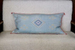 Discover the allure of Moroccan craftsmanship with our light blue Sabra silk Pillows. These Moroccan Sabra Pillows are perfect for adding a refined boho vibe to any space. Each Pillow is detailed with handwork of Moroccan textiles originally as rugs but turned into pillows.