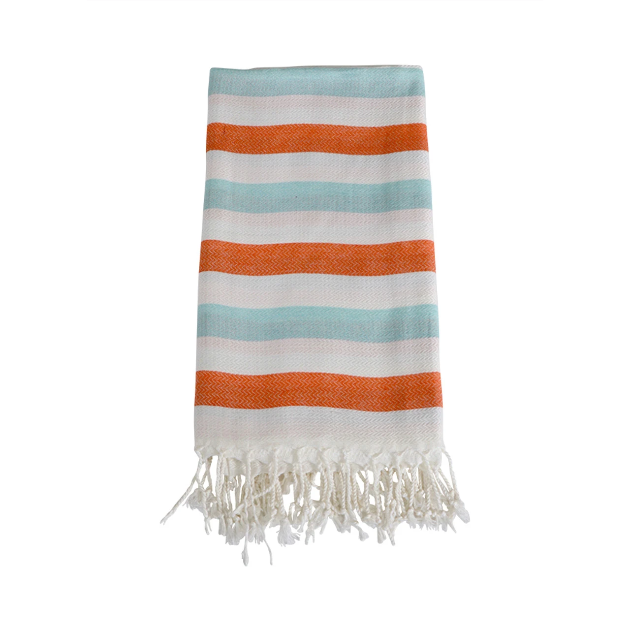 An excellent hammam towel, also known as peÅŸtemal, is a traditional Turkish bath towel. This luxuriously large yet lightweight towel is highly absorbent ,soft and durable Each towel is hand woven from fine Turkish bamboo and cotton with a beautiful color weaving and hand-knotted fringe.