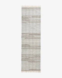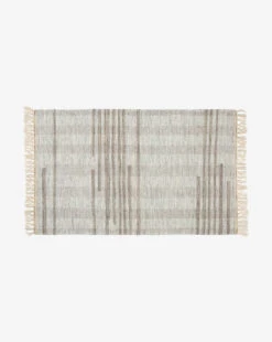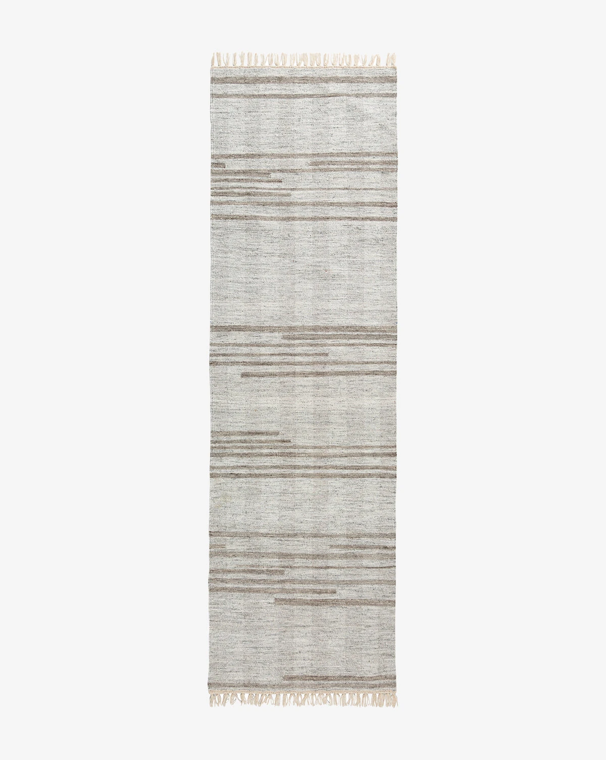 With a simple palette, the Lochlyn Handwoven Wool Rug holds a remarkable level of detail from its careful construction. Handwoven using a manual broadloom, the yarn creates a subtly intricate pattern within the block stripes. The rug lends durable style to any room with its New Zealand wool blend.  Â