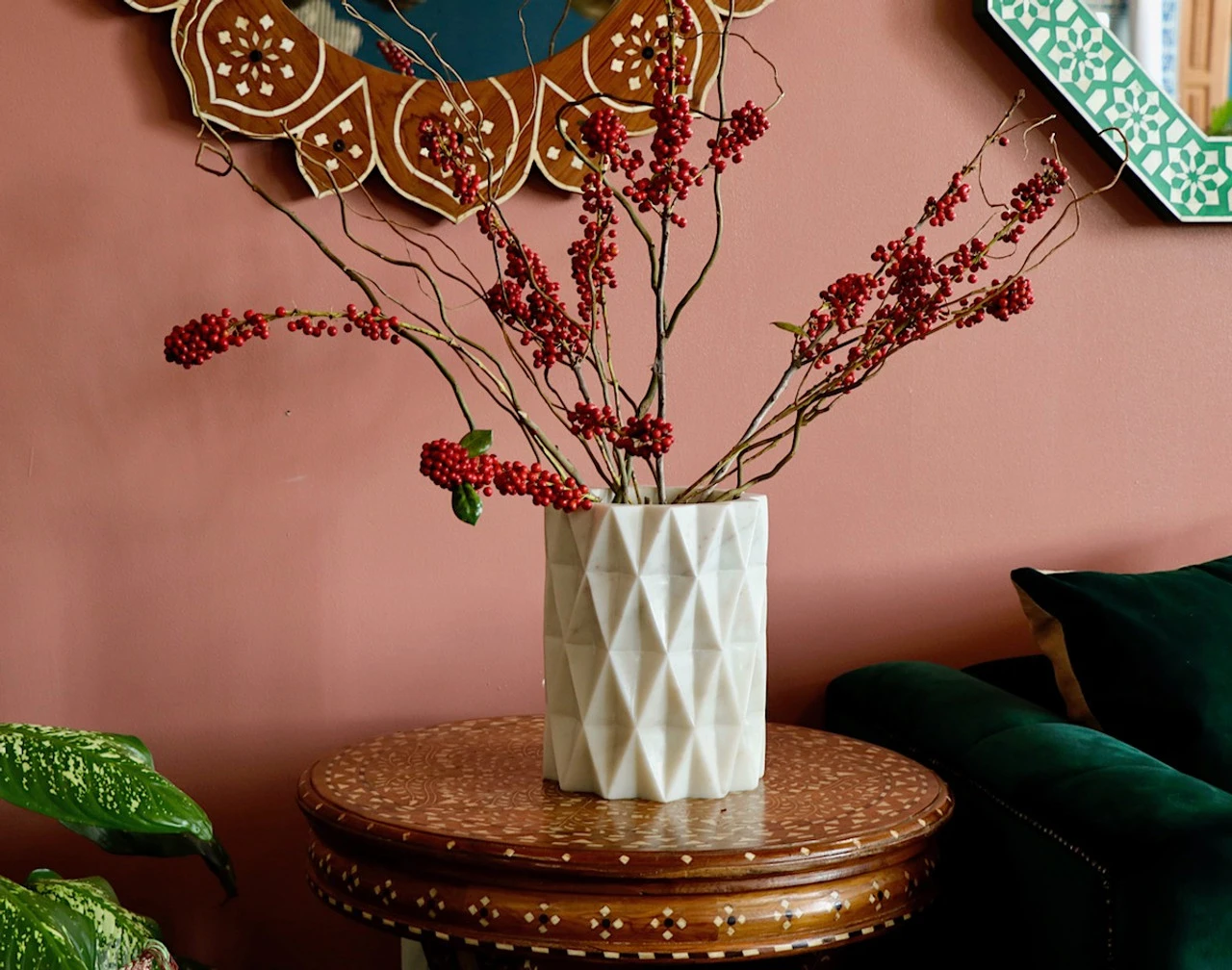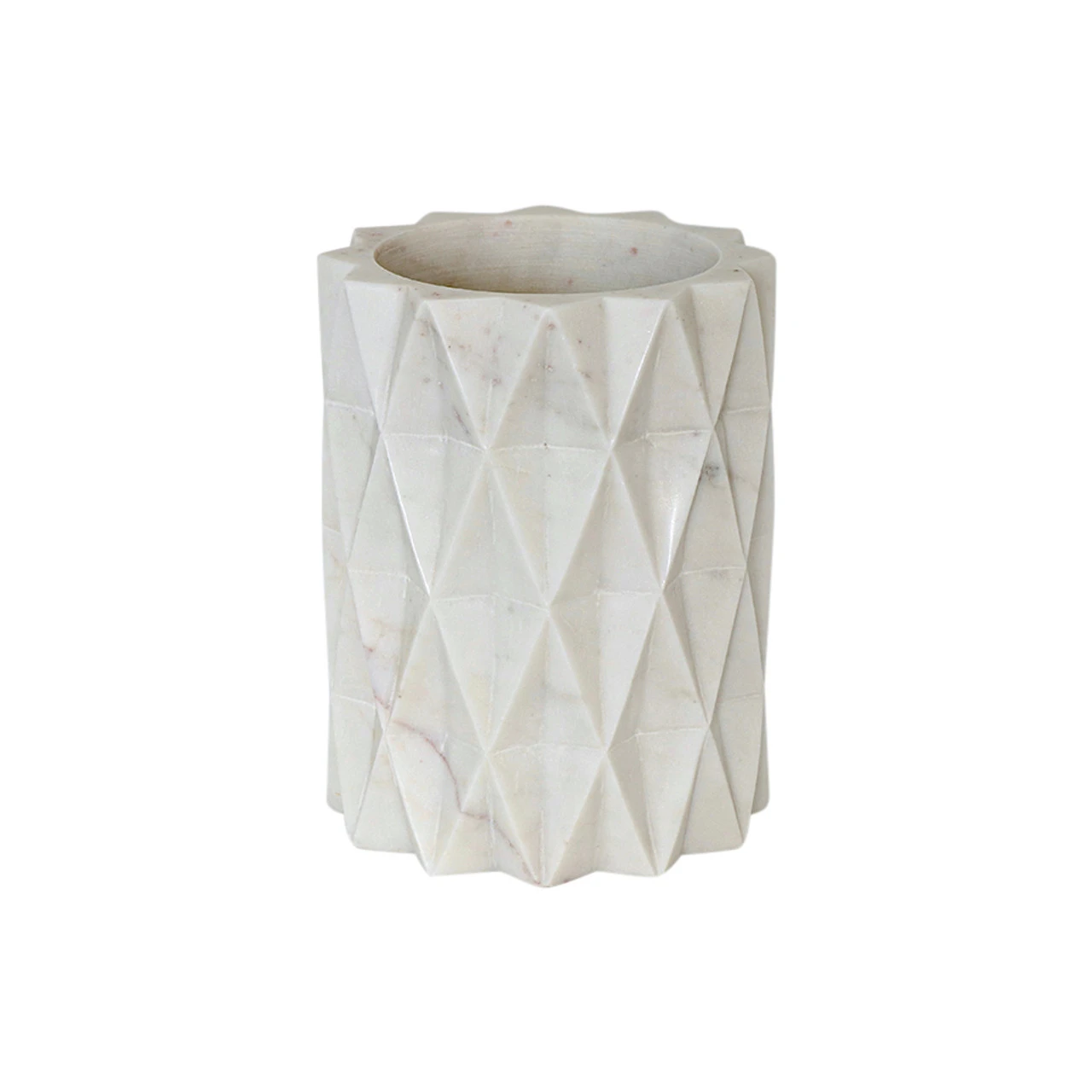 This modern design of this hand-carved marble vase means it makes an impact with or without your favorite flowers within