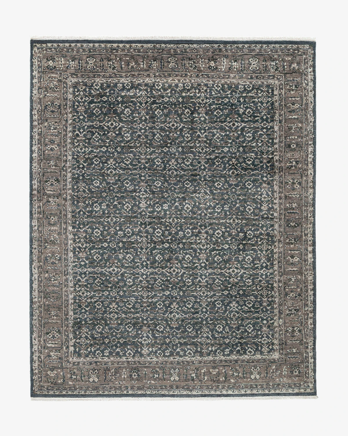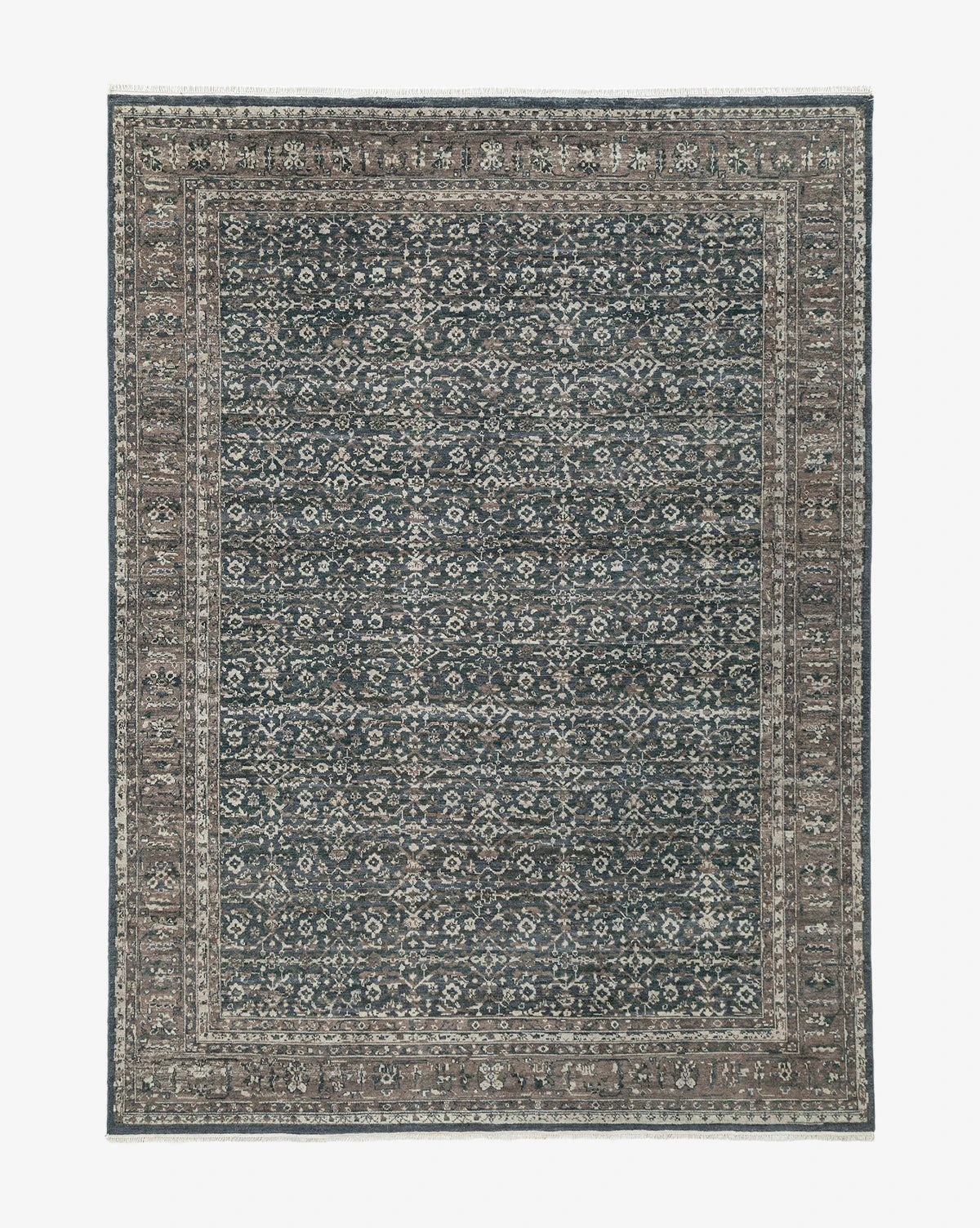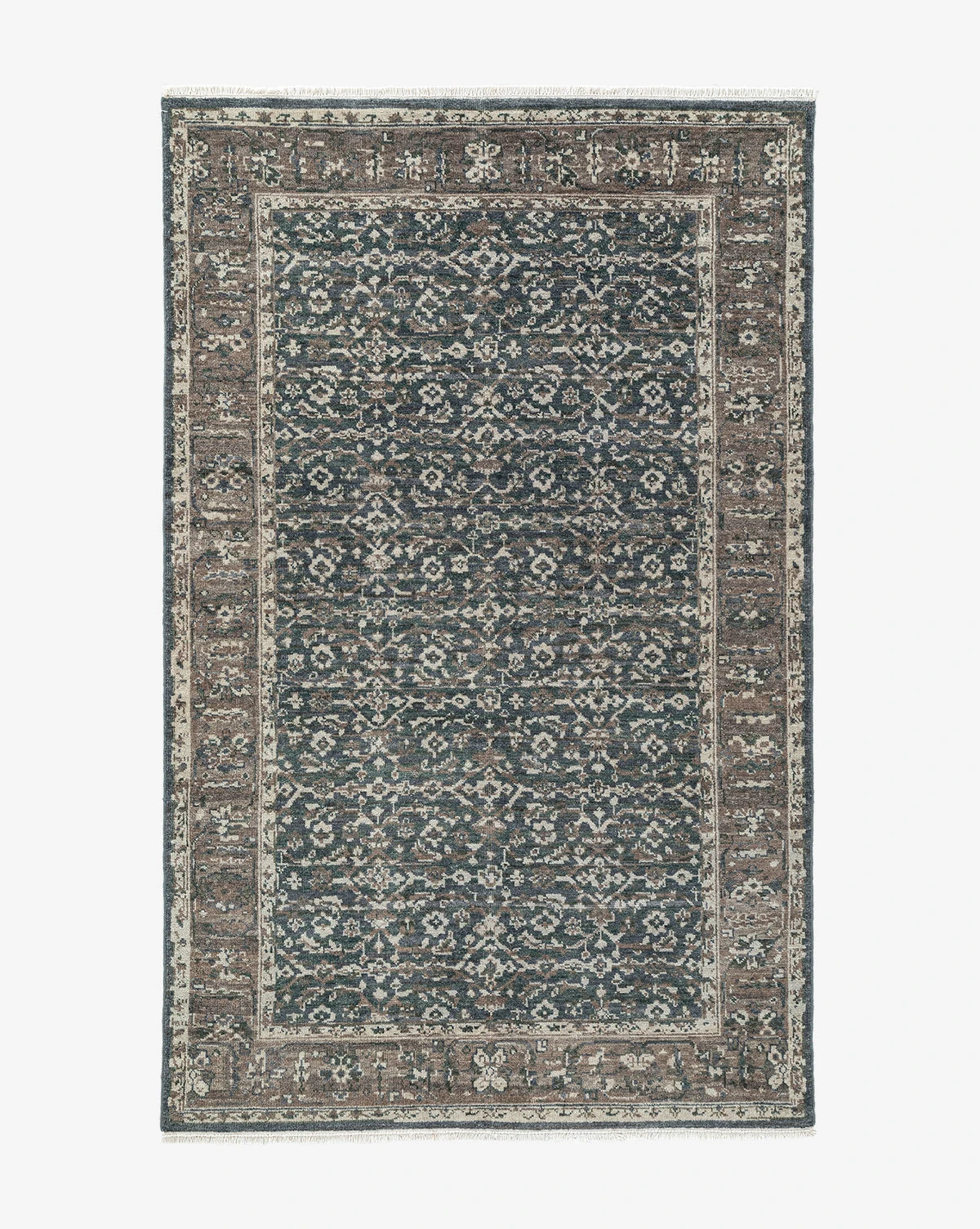 Hand-knotted with rich green and blue tones, our Marta Hand-Knotted Wool Rug is timeless and refined. Made with 100% wool, the rug anchors any room while remaining durable for years to come. Its beautiful motif features a classic border and intricate details.