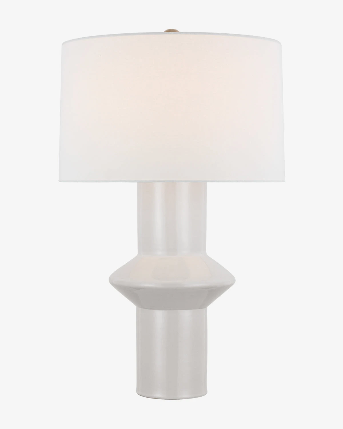 With a masterfully designed glazed ceramic base, the Maxime Table Lamp is both sleek and sculptural. Its reactive white ceramic base complements the linen drum shade, bringing a neutral palette and warm light to your space.