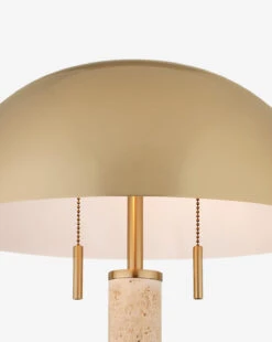 Refined and textural, the Miles Table Lamp is made from natural travertine and brass in a balanced design. Its round shade brings warm light to your space and highlights the organic detail of its travertine body.