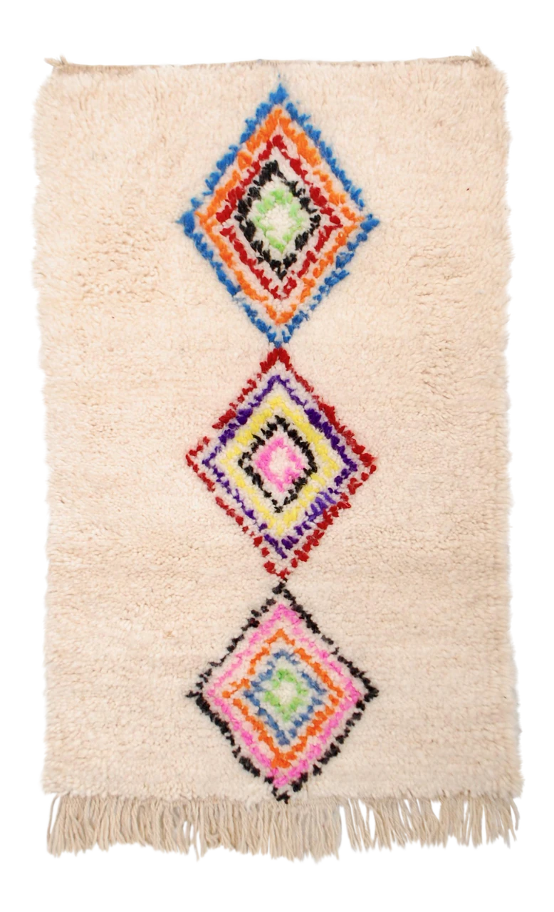 Perfect for apartments and small spaces, this vintage Berber carpet comes from Azilal tribe in the Atlas Mountains of Morocco and works well next to the bed or in an entryway.