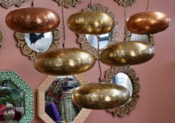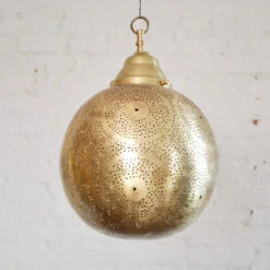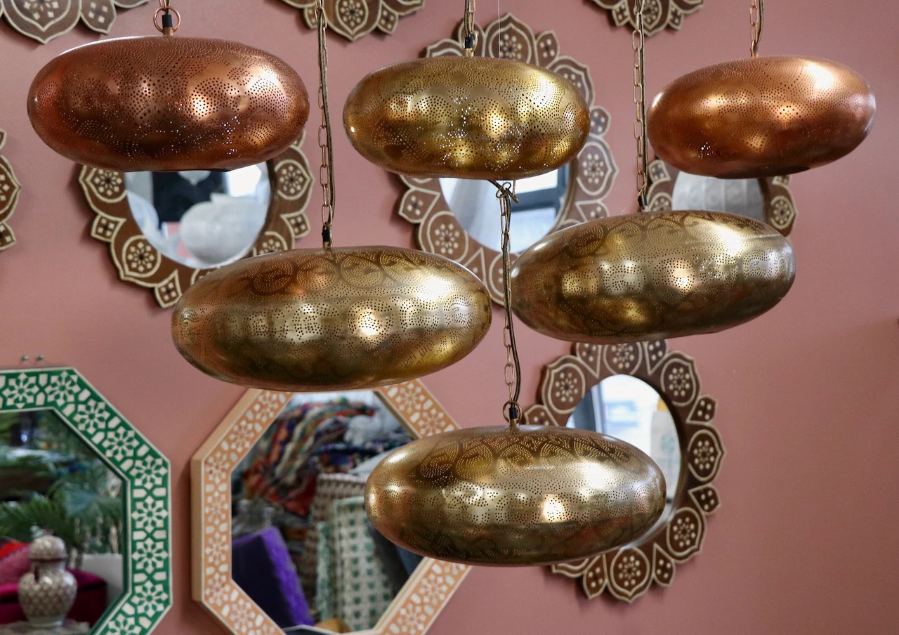 Blending modern form with traditional craftsmanship, these Moroccan brass and copper lamps feature detailed designs that bring soft, warm lighting to any space. Create more drama by hanging several together.Â