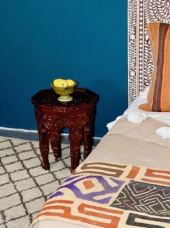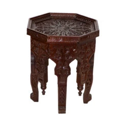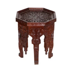 Regal and intricately carved by hand, this dark wooden table can be the centerpiece of your seating area or used to showcase beautiful decorative objects.