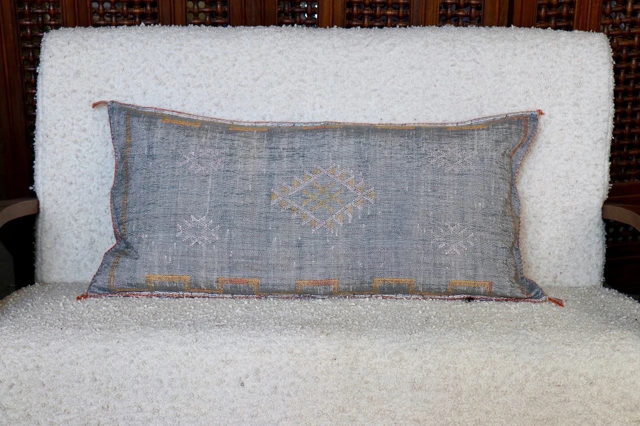 Discover the allure of Moroccan craftsmanship with our grey cactus silk Pillows. These Moroccan cactus Pillows are perfect for adding a refined boho vibe to any space. Each Pillow is detailed with handwork of Moroccan textiles originally as rugs but turned into pillows.