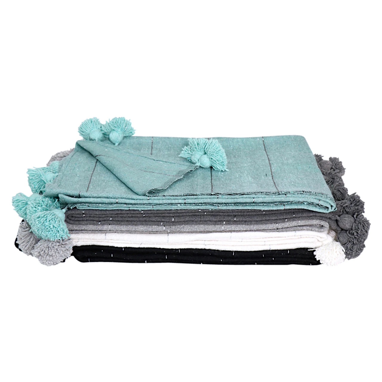 Our Moroccan Pom Pom blankets are 100% pure wooL, Hand woven on wooden Looms by local artisans in Marrakech.
