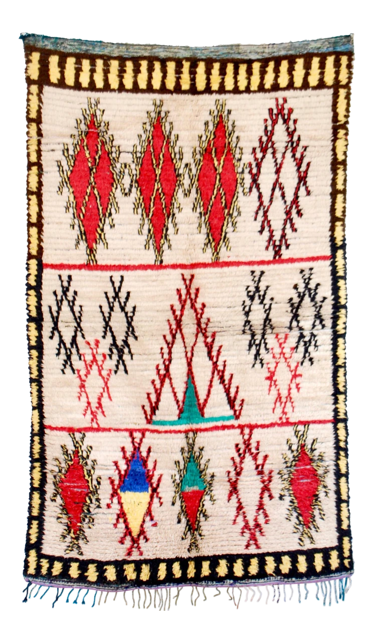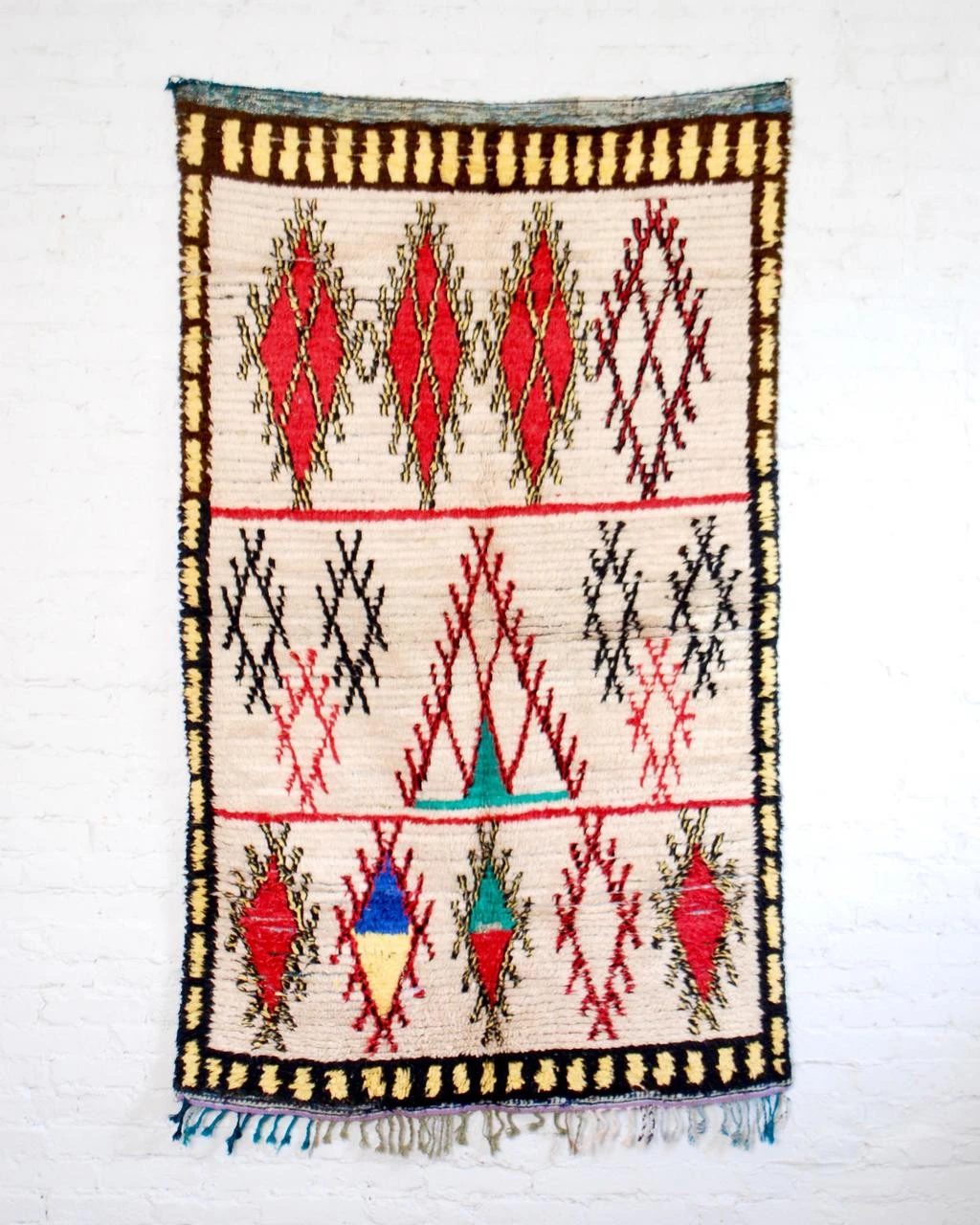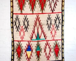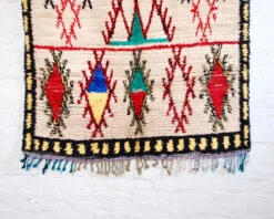 Perfect for apartments and small spaces, this vintage Berber carpet comes from Azilal tribe in the Atlas Mountains of Morocco and works well next to the bed or in an entryway.