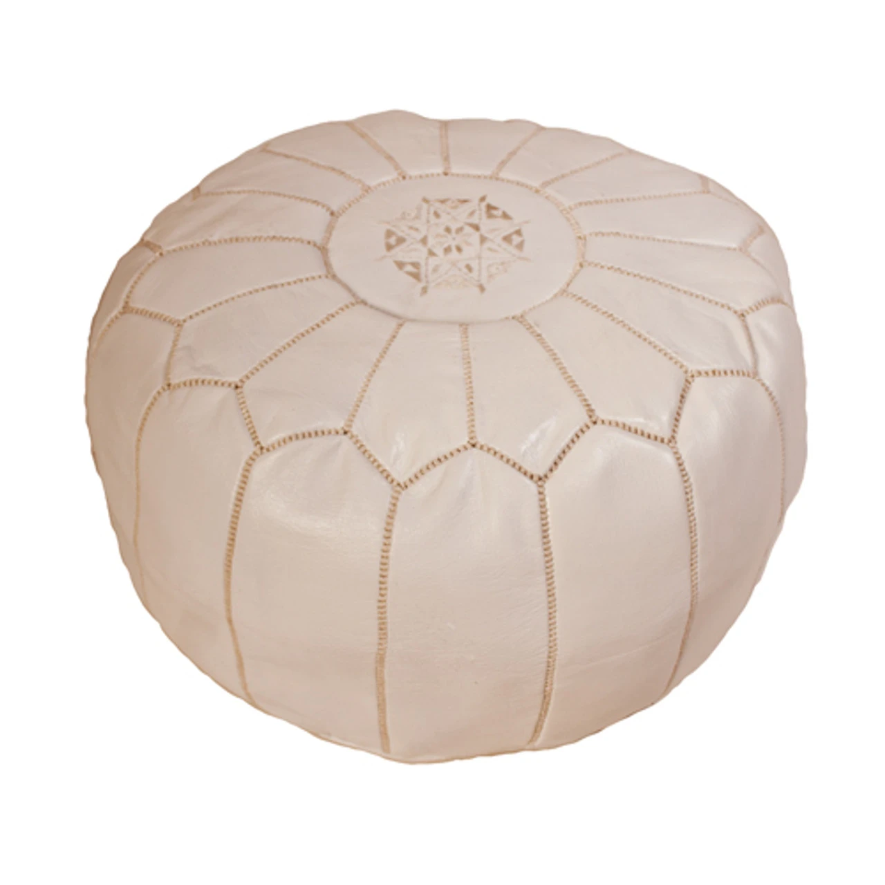 Welcome this Moroccan white Leather Pouf into your home. Place your order online now.