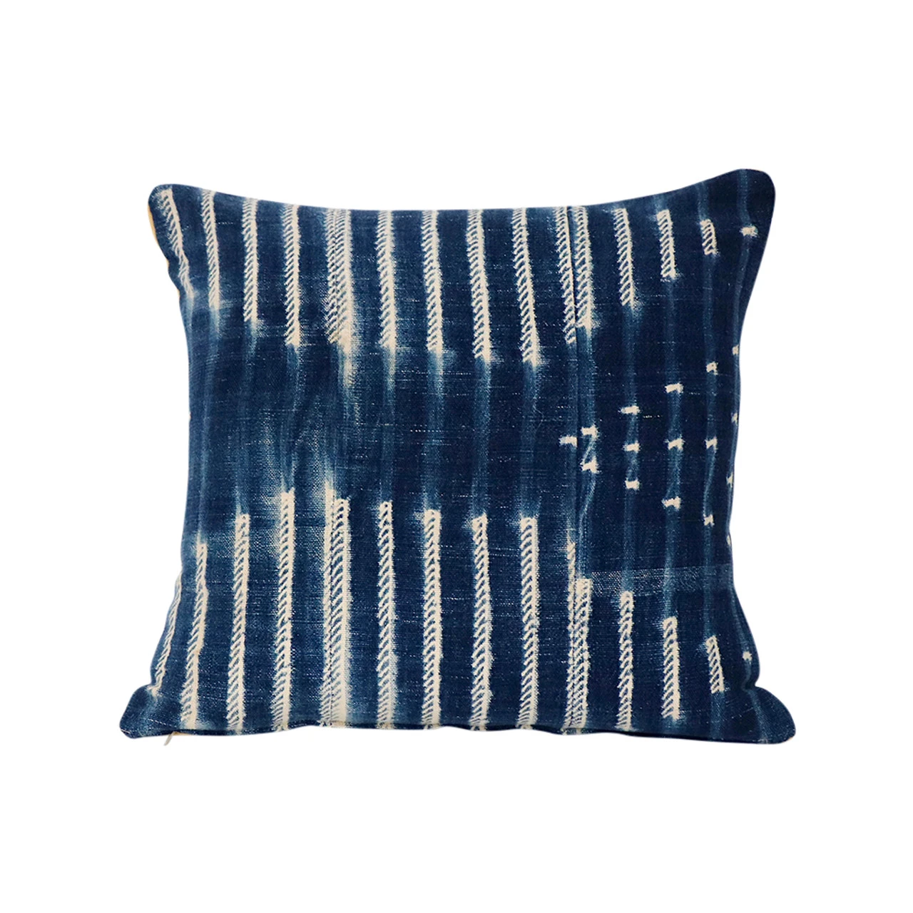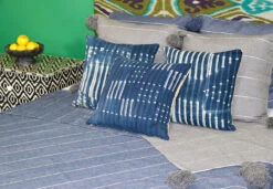 Our vintage mud cloth pillows are hand dyed. The fabric is dyed using a technique that involves folding and twisting the cloth and dyeing it in an indigo bath.All mud cloth is individually hand spun, hand woven, and hand painted. Each piece is unique.