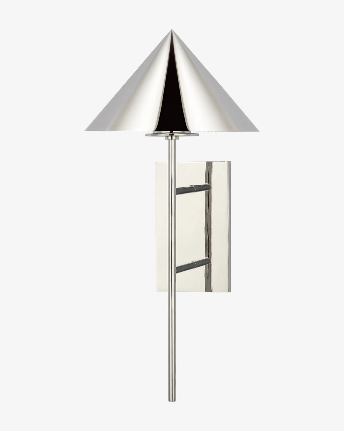 With a conical shade and slender neck, the Orsay Downlight Sconce is an updated take on metallics and modern design. Available in three finishes, each sconce is damp rated for placement in any space in the home.