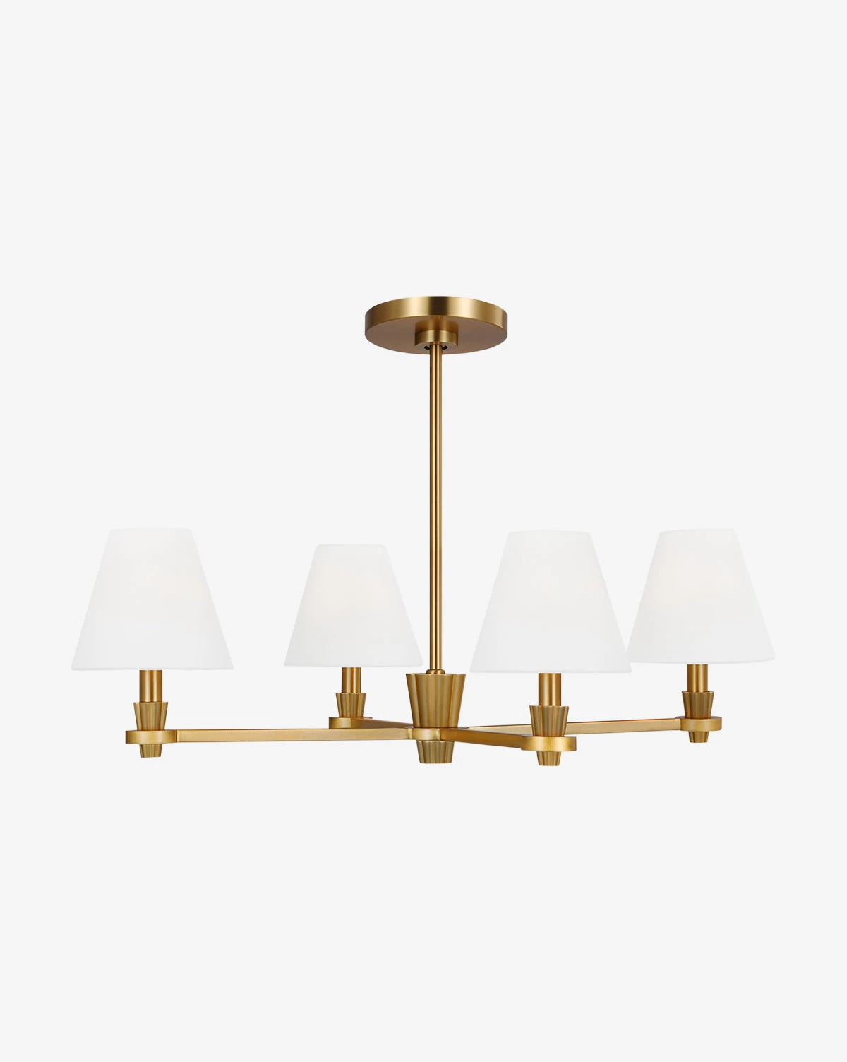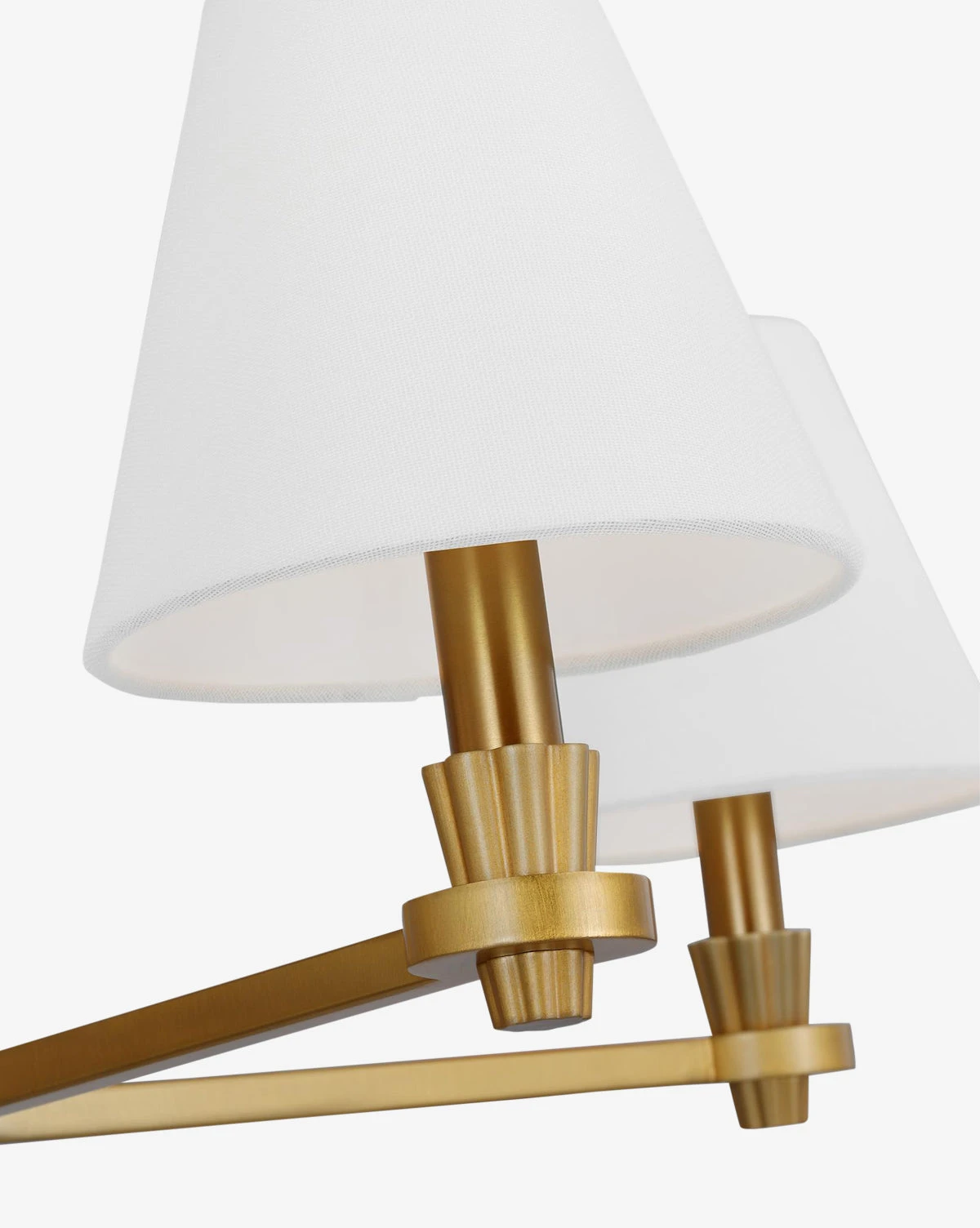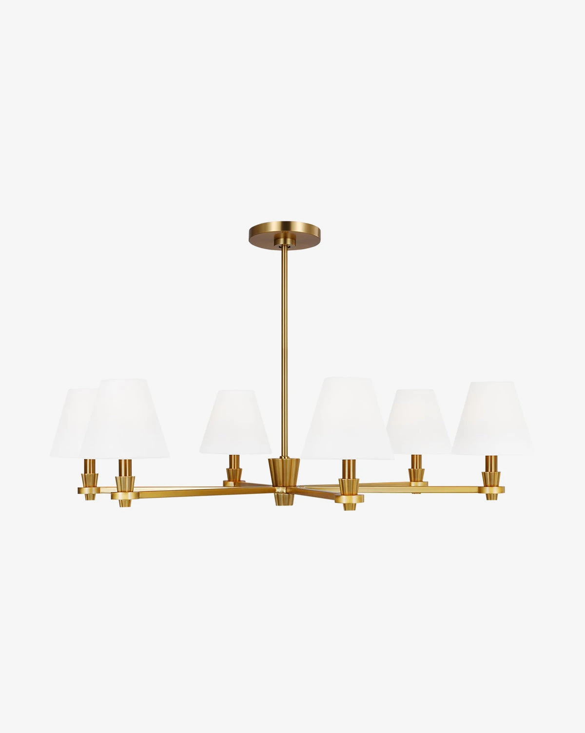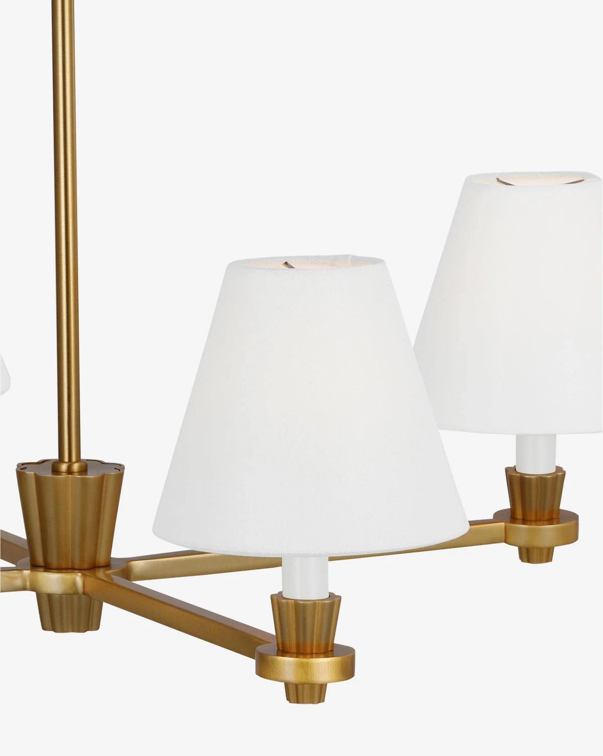 With a traditional silhouette, the Paisley Chandelier brings simplicity to your decor with sleek modern elements and a bold finish. The white linen fabric shades provide a welcome contrast to the structure and add soft lighting to your space.