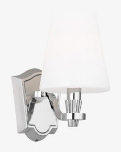 With a traditional silhouette, the Paisley One Light Vanity brings simplicity to your decor with sleek modern elements and two bold finishes. The white linen fabric shade provides a welcome contrast to the structure and adds soft lighting to your space.