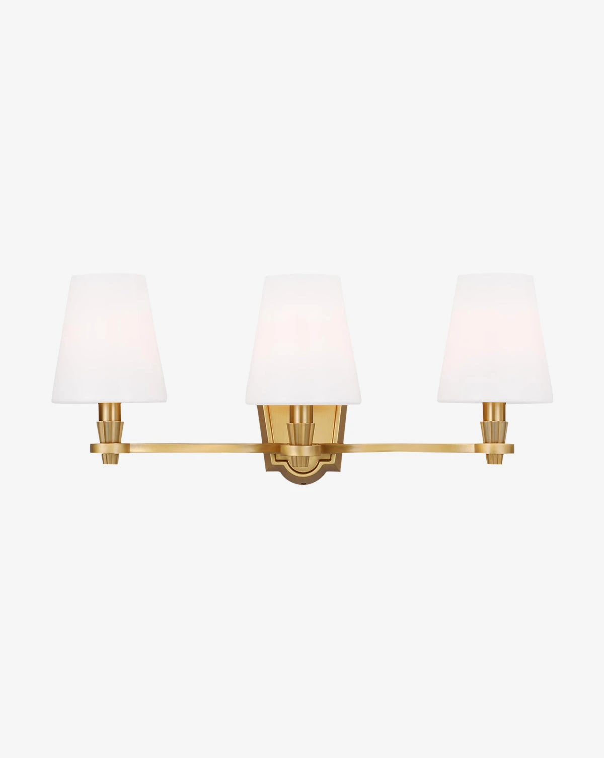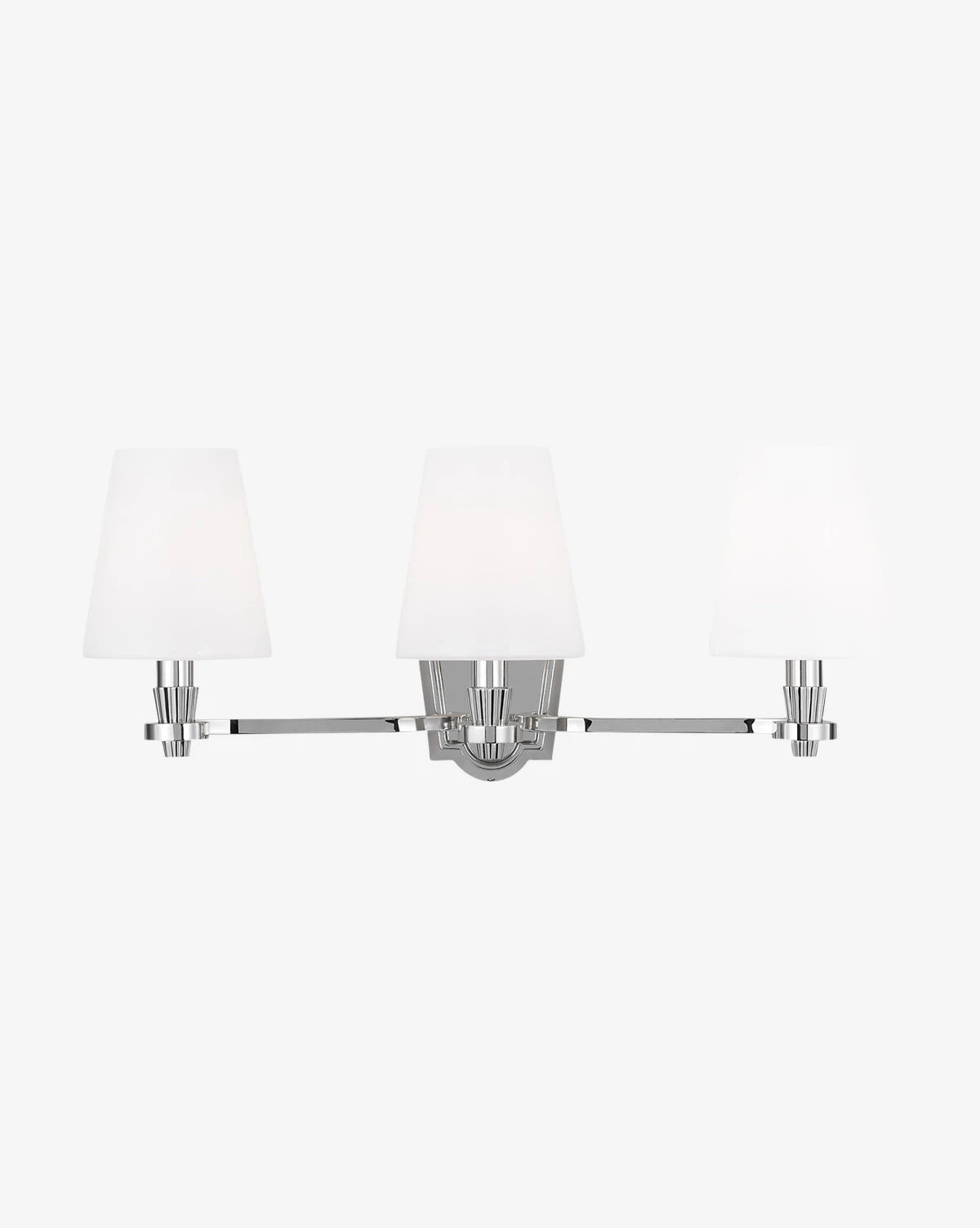 With a traditional silhouette, the Paisley Three Light Vanity brings simplicity to your decor with sleek modern elements and two bold finishes. The white shades provide a welcome contrast to the structure and add soft lighting to your space.