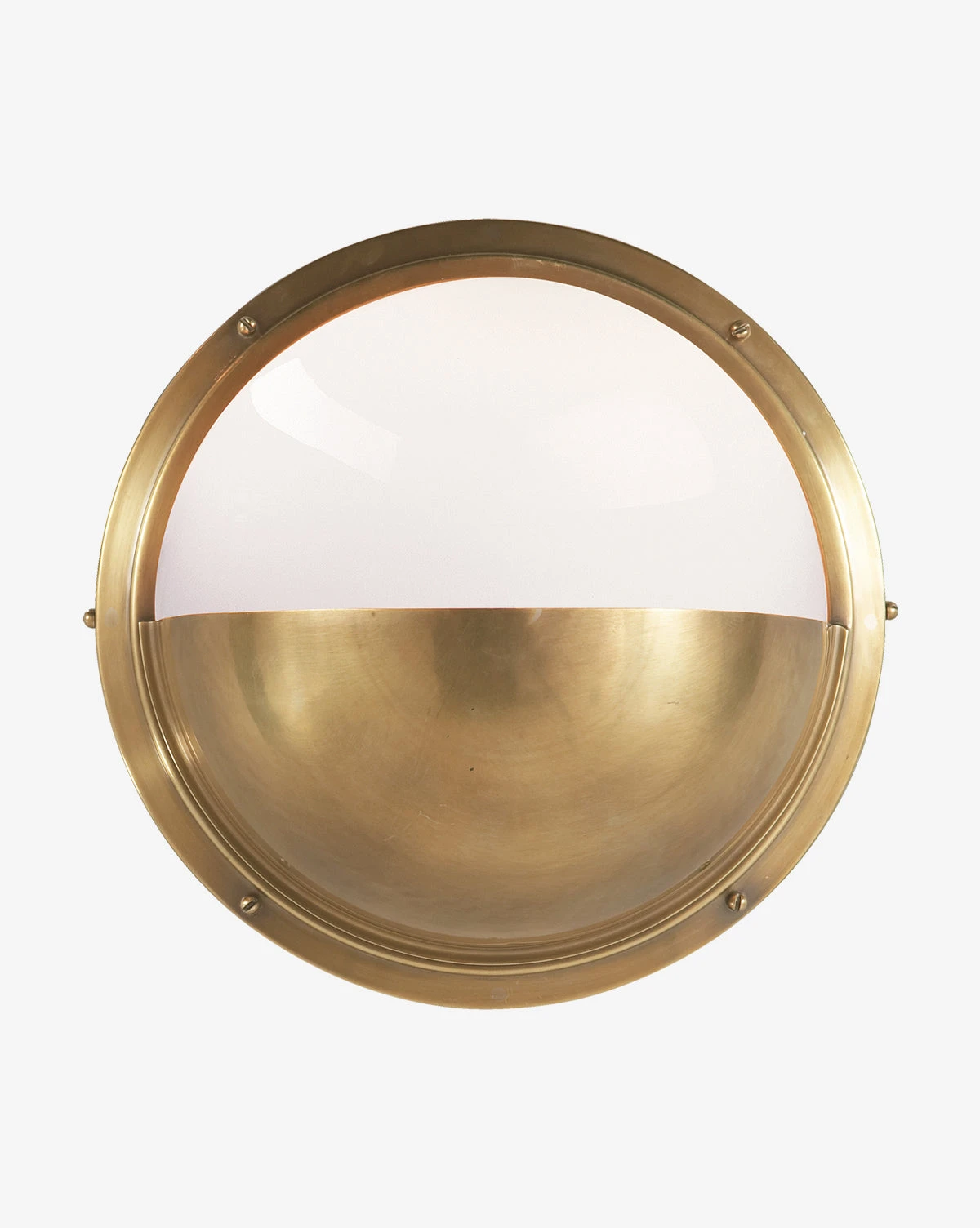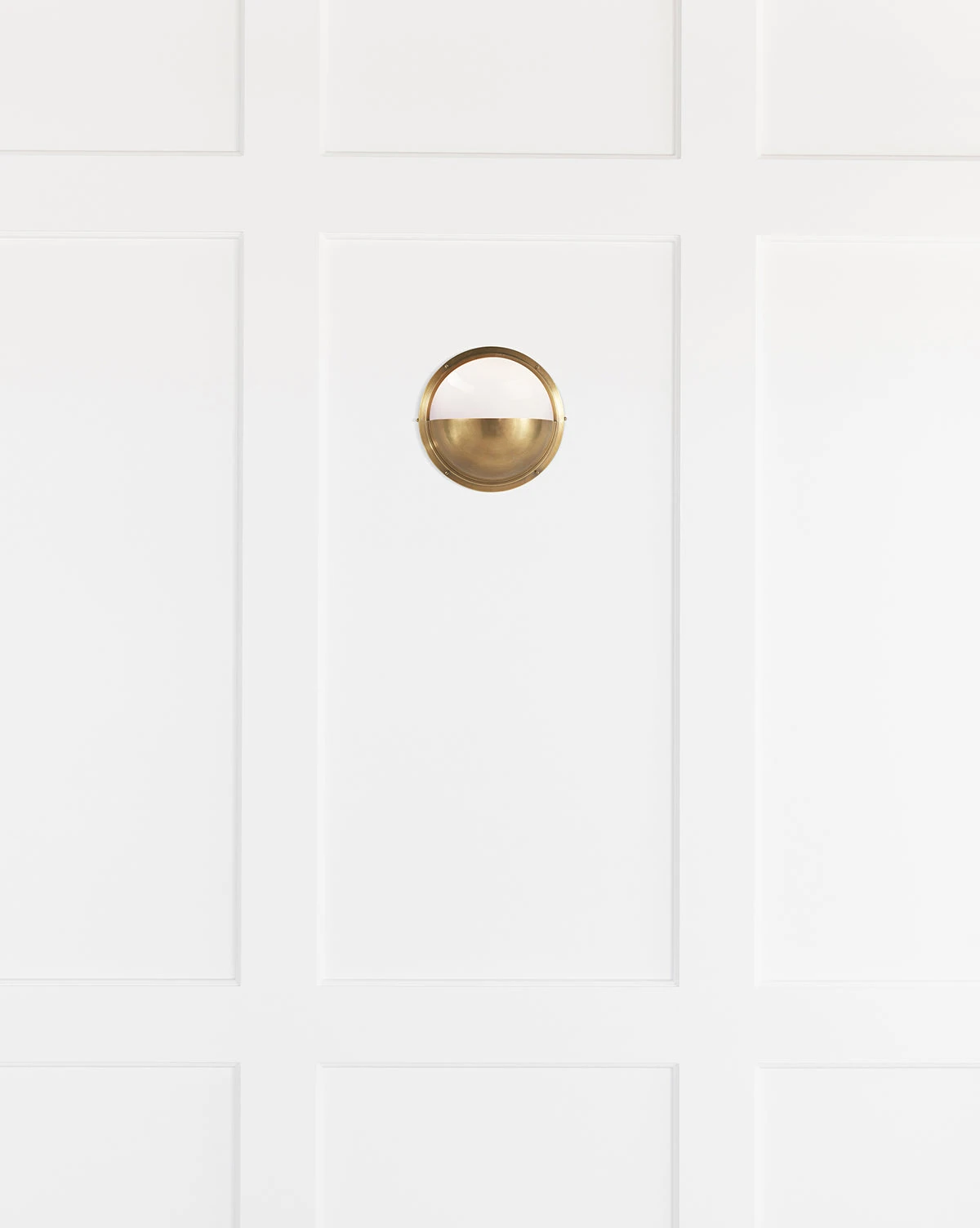 A half-moon shaped frame, provides grounding for our Pelham Moon Light’s white glass shade, while directing the light upward. With sleek metal finish options it keeps this nautical style light updated and versatile.
